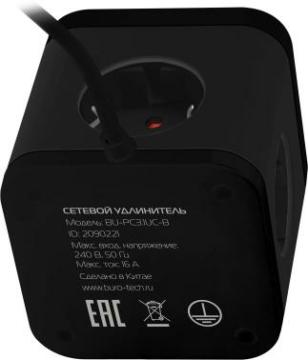 Сетевой удлинитель Buro BU-PC3.1UС-B 1.5м (3 розетки) черный (пакет ПЭ)