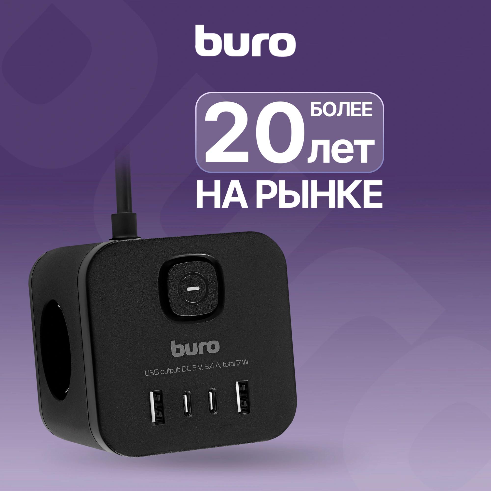 Сетевой удлинитель Buro BU-PC3.1UС-B 1.5м (3 розетки) черный (коробка)
