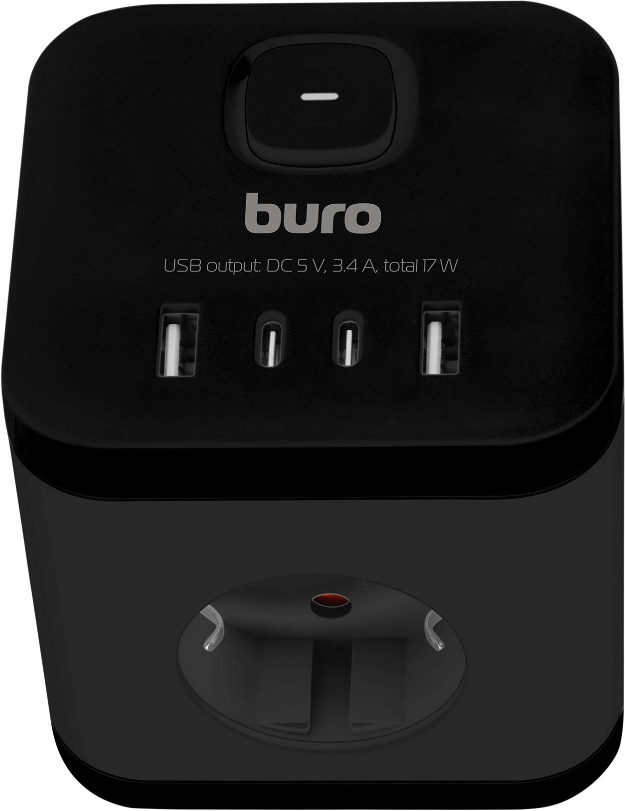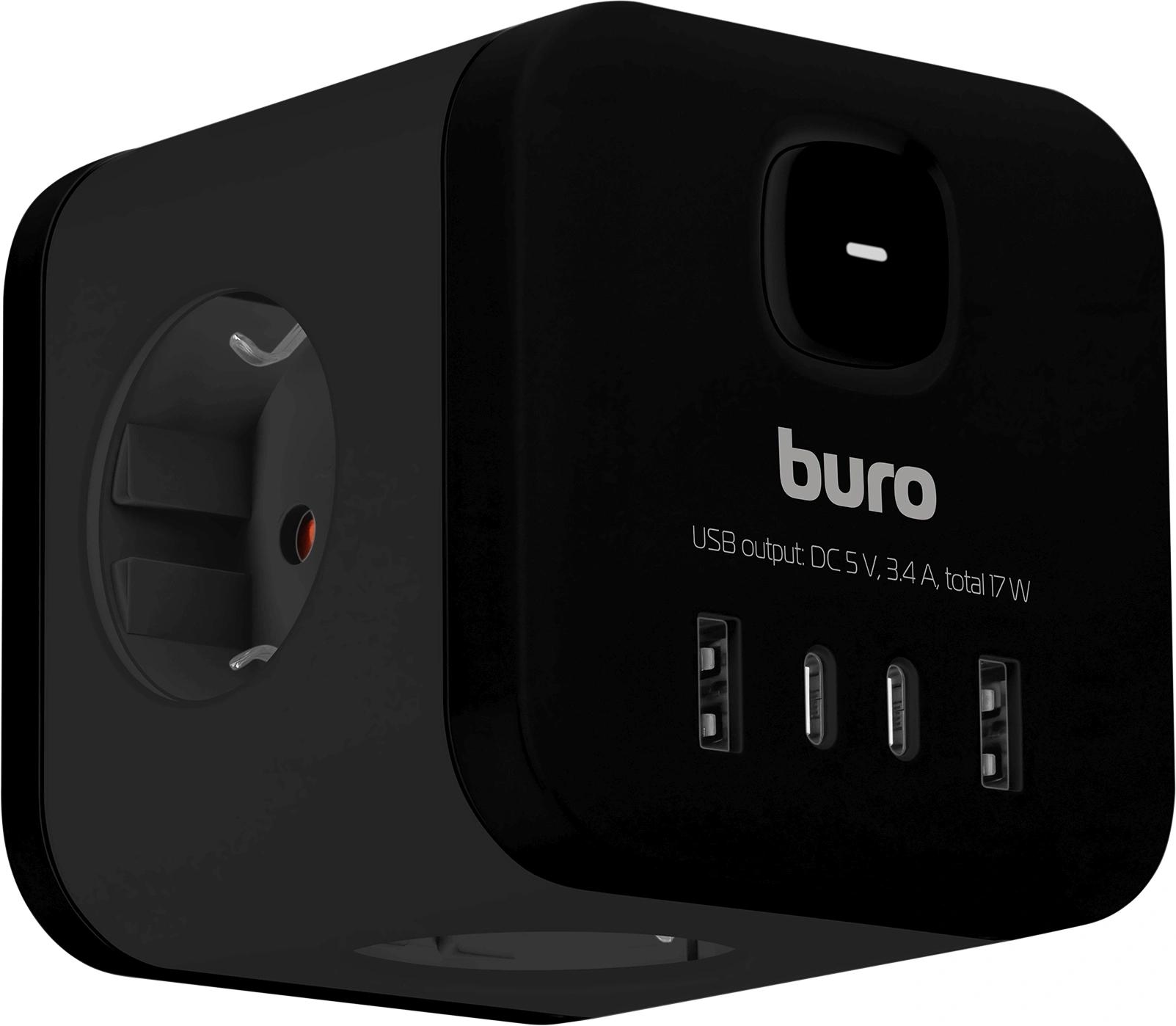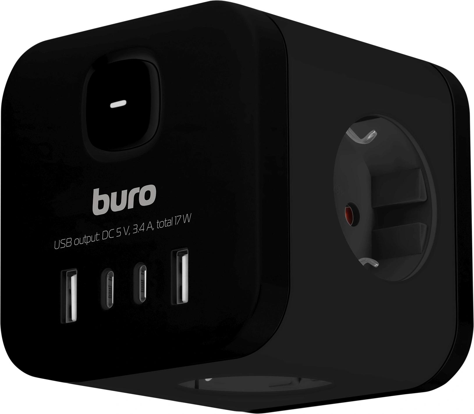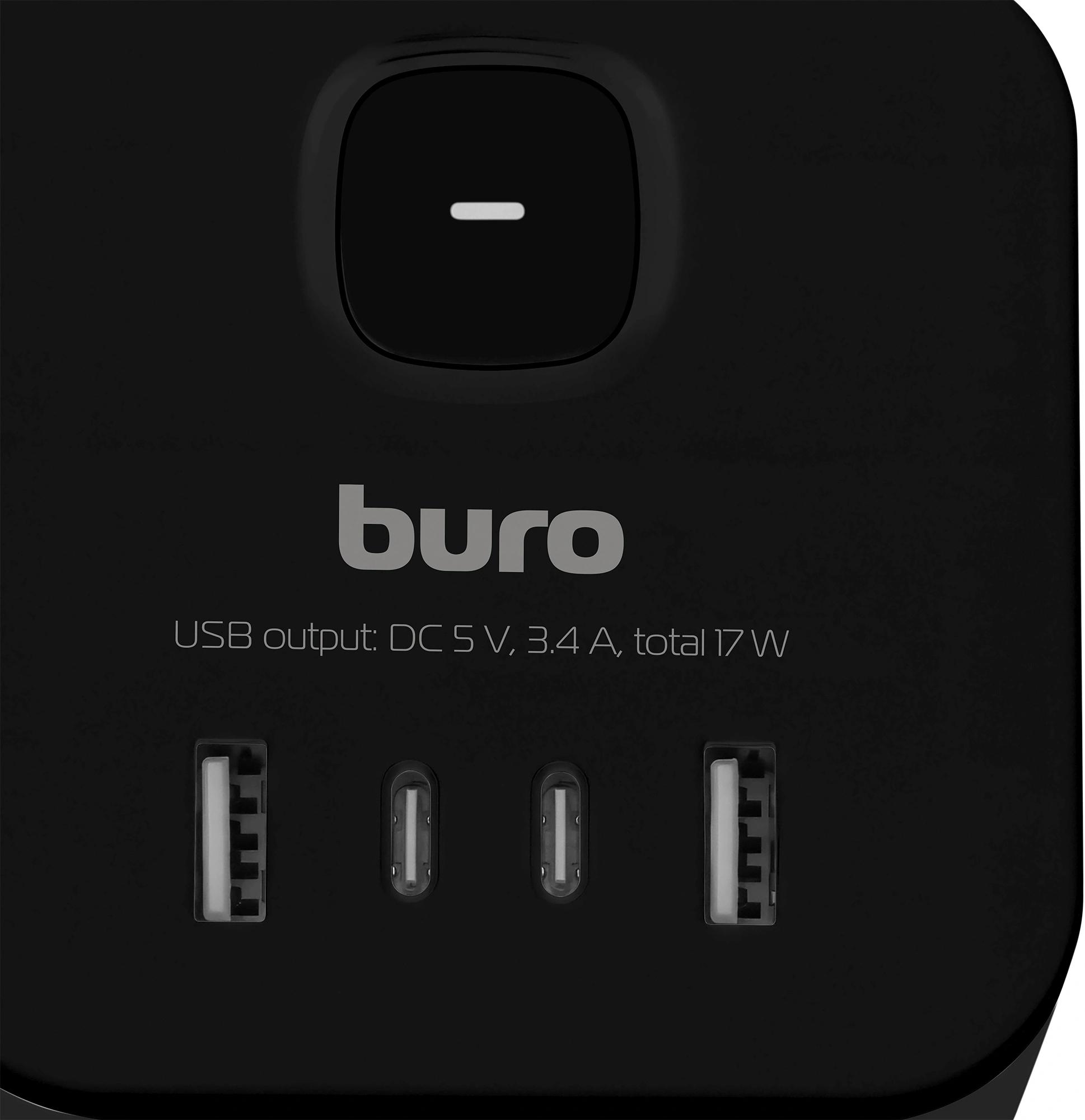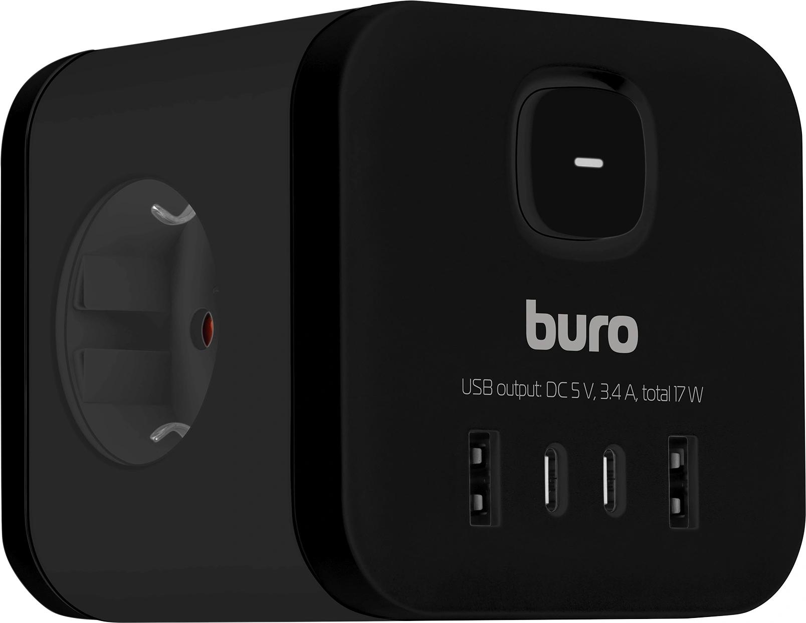 Сетевой разветвитель Buro BU-PW3UC-B (3 розетки) черный (пакет ПЭ)