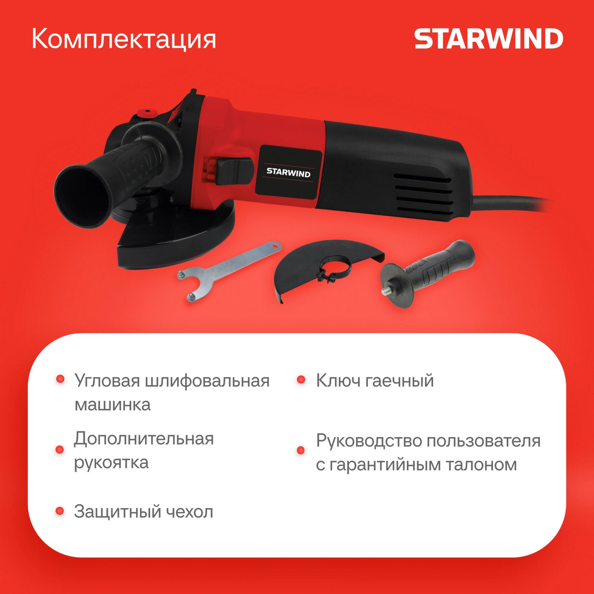 Угловая шлифмашина, дополнительная рукоятка, ключ специальный, руководство по эксплуатации, защитный кожух, гарантийный талон.