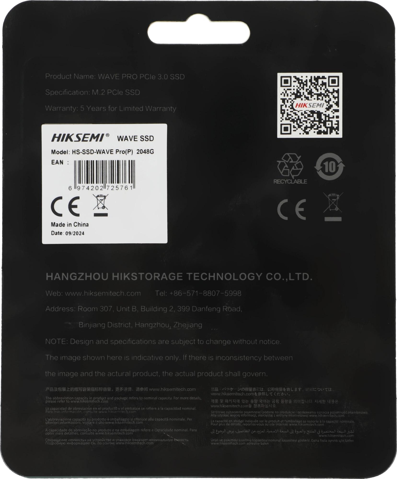 Накопитель SSD Hikvision PCIe 3.0 x4 2TB HS-SSD-WAVE PRO(P) 2048G M.2 2280