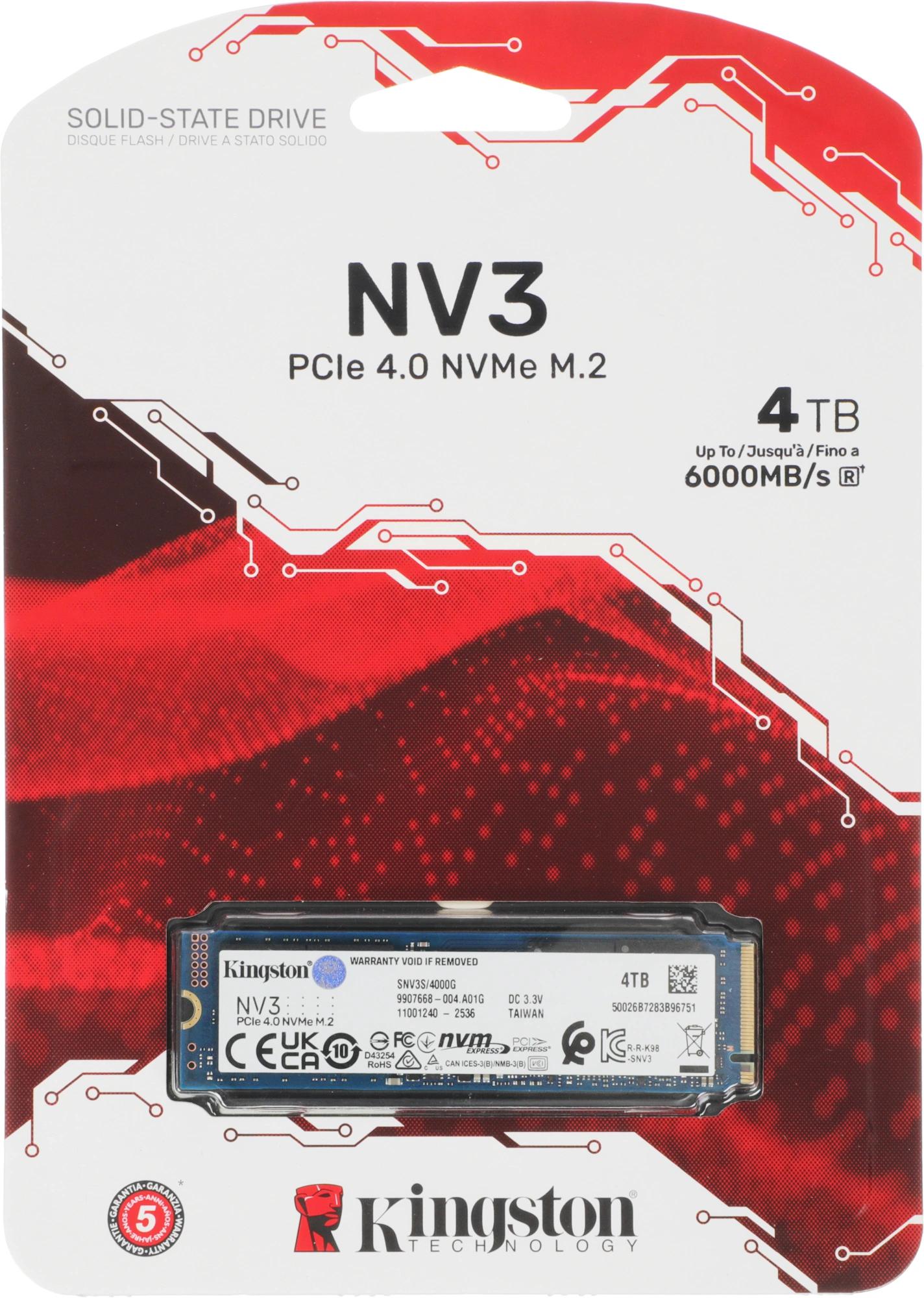 Накопитель SSD Kingston PCIe 4.0 x4 4TB SNV3S/4000G NV3 M.2 2280