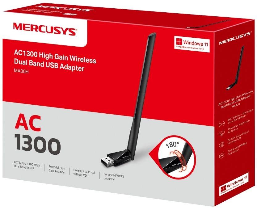 Сетевой адаптер Wi-Fi Mercusys MA30H AC1300 USB 2.0 (ант.внеш.несъем.) 1ант.