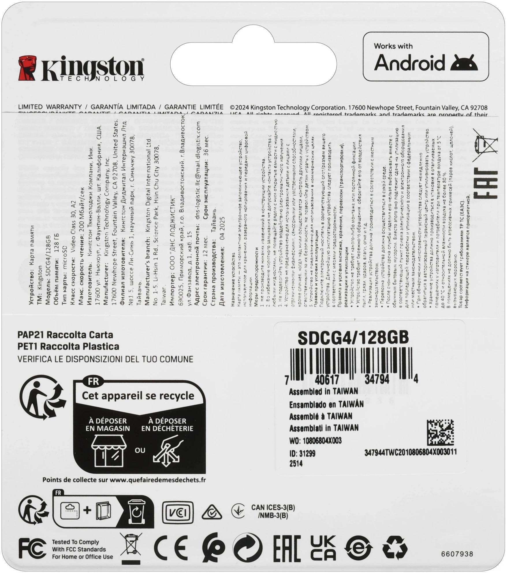 Флеш карта microSDXC 128GB Kingston SDCG4/128GB Canvas Go! Plus V30 A2 + adapter