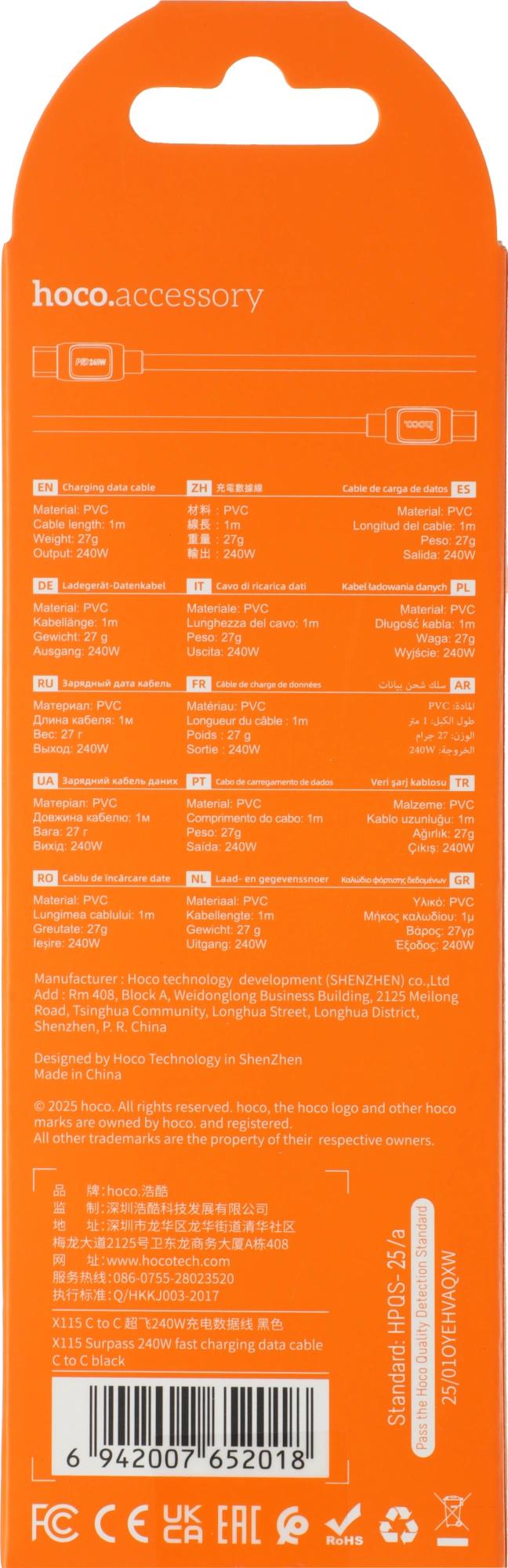 Кабель Hoco X115 52018 USB Type-C (m)-USB Type-C (m) 1.2м черный