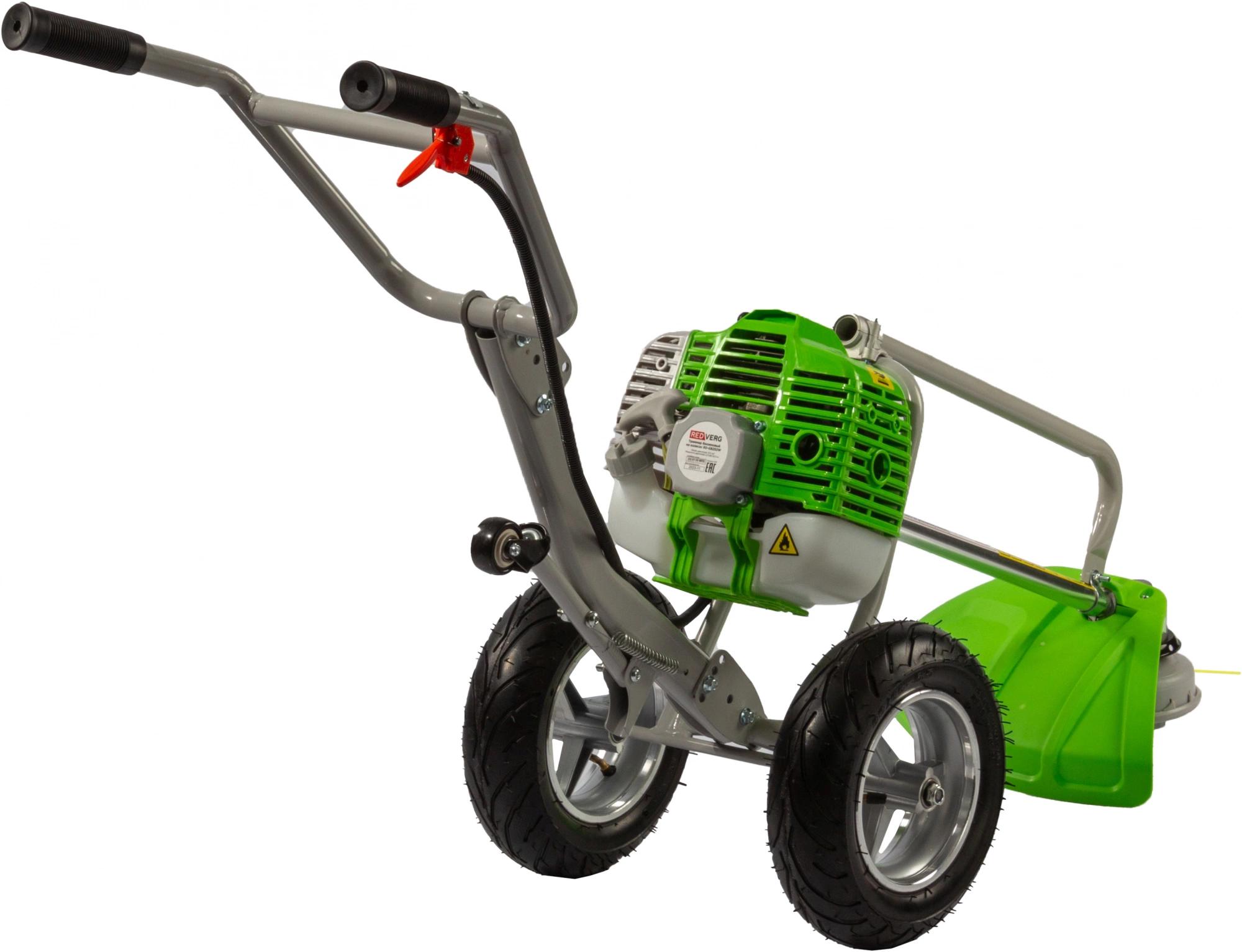 Двигатель в сборе, Штанга в сборе с редуктором, Защитный кожух, Режущий диск, Катушка с леской, Складная рукоятка управления, Колеса - 2 шт., Комплект ключей, Паспорт продукции, Емкость для приготовления топливной смеси