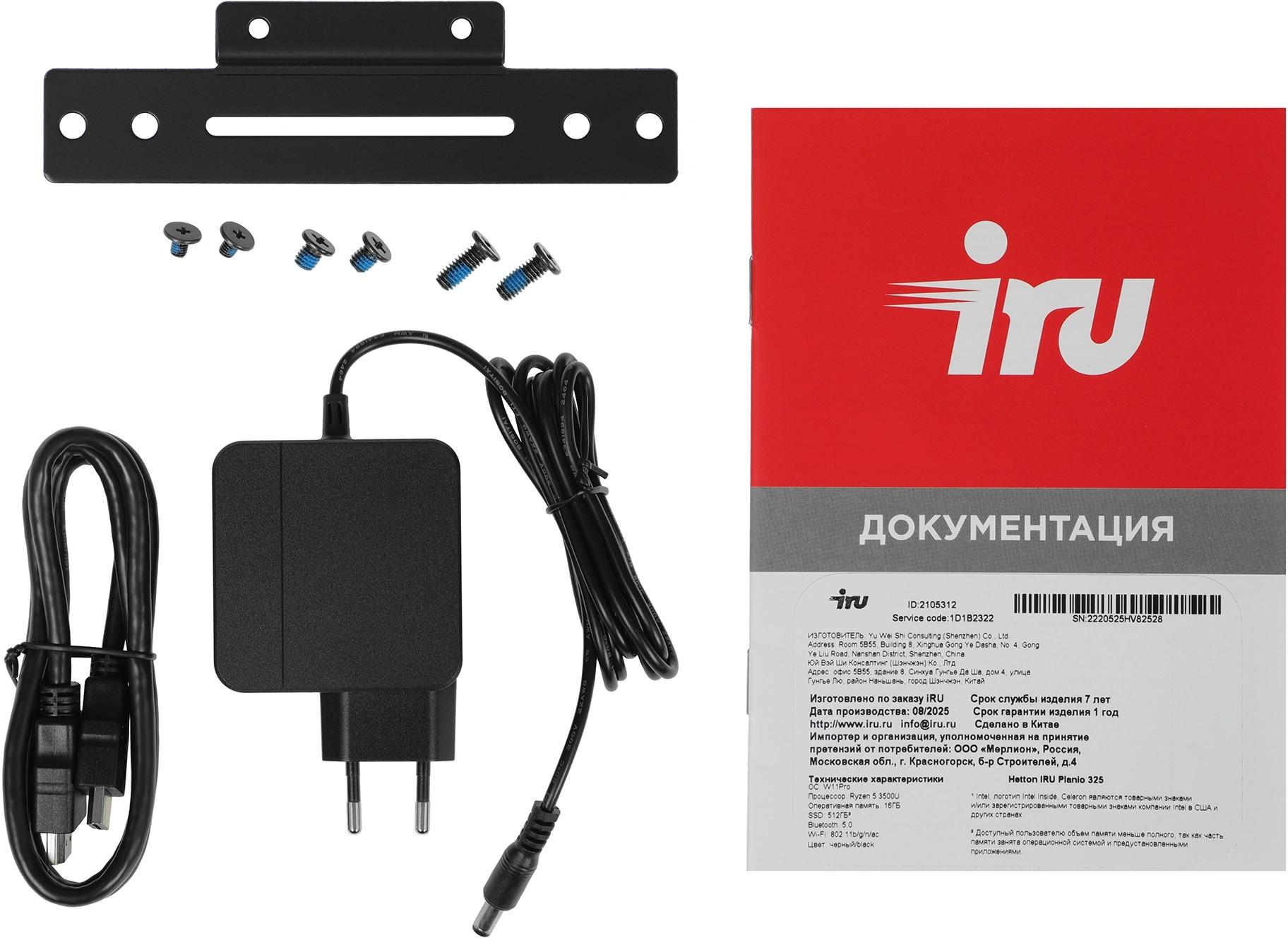 Неттоп IRU Planio 325 Ryzen 5 3500U (2.1) 8Gb SSD256Gb Vega 8 Windows 11 Pro GbitEth WiFi BT 65W черный (2105308)