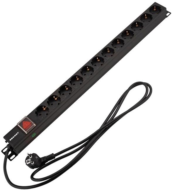 Блок распределения питания Rexant 04-0204-2 верт.размещ. 12xCEE7/4 базовые 16A CEE7/7 2м