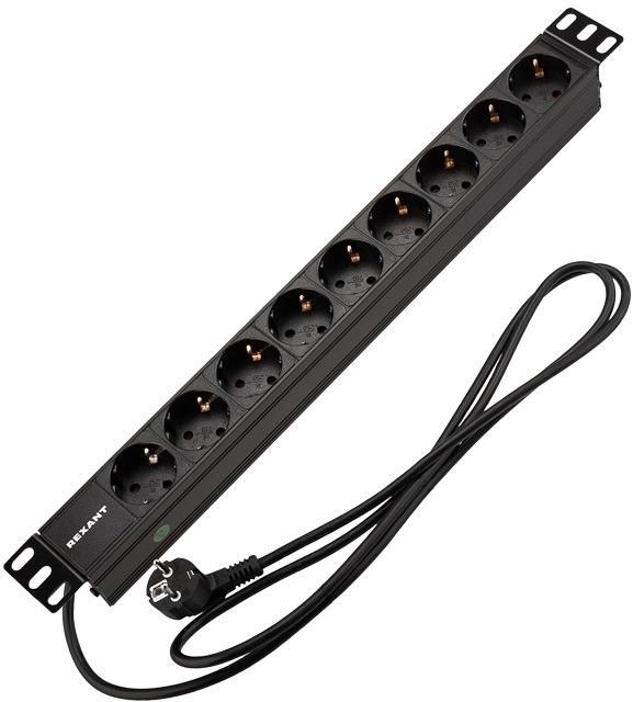 Блок распределения питания Rexant 04-0105-1 гор.размещ. 9xCEE7/4 базовые 16A CEE7/7 2м