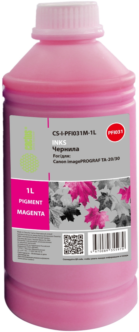 Чернила Cactus CS-I-PFI031M-1L PFI-031 пурпурный1000мл для Canon imagePROGRAF TA-20/30