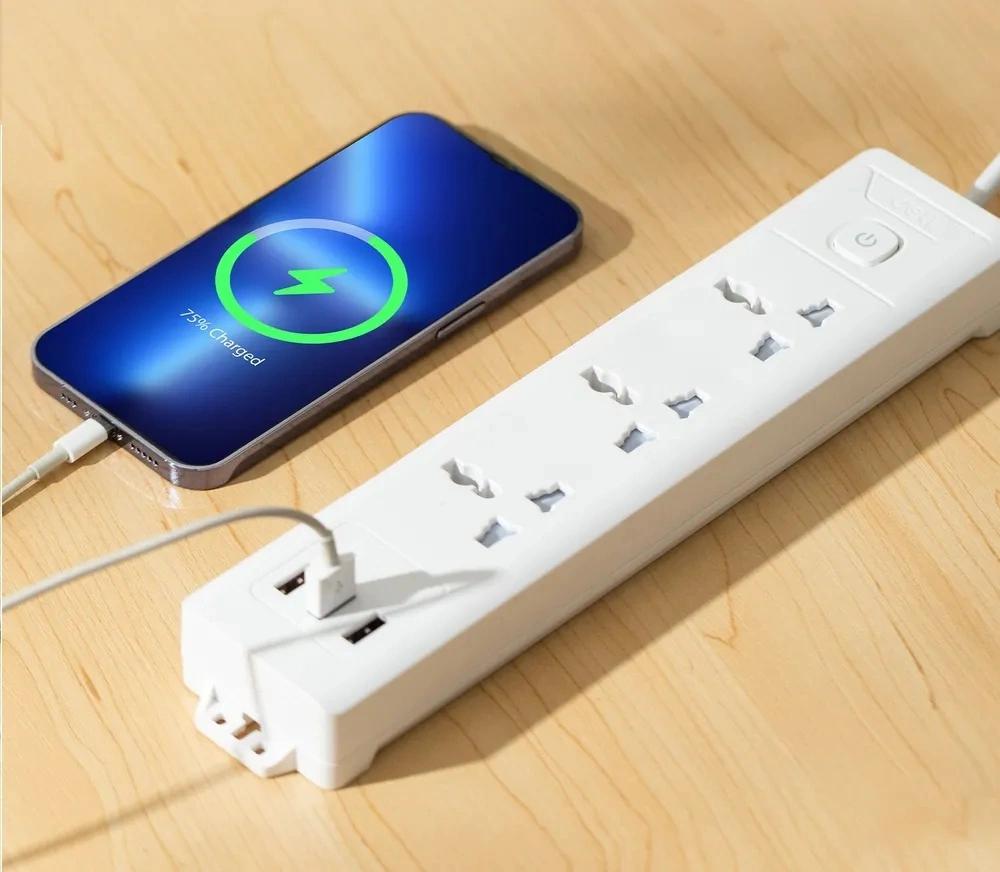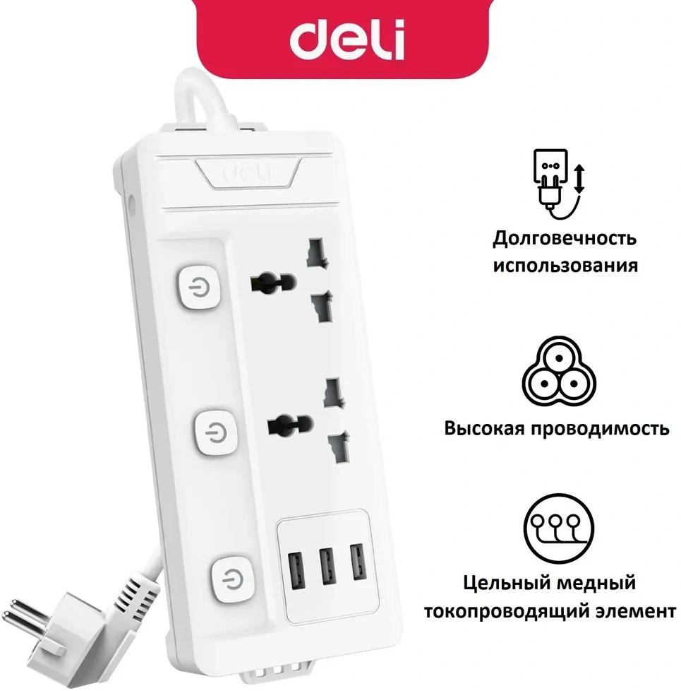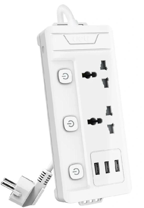 Сетевой фильтр Deli ET409 2м (2 розетки) белый (пакет ПЭ)