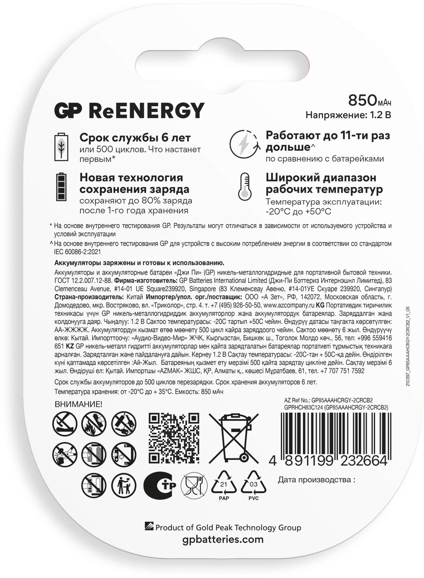 Аккумулятор GP 85AAAHCRGY-2CRCB2 AAA NiMH 850mAh (2шт)