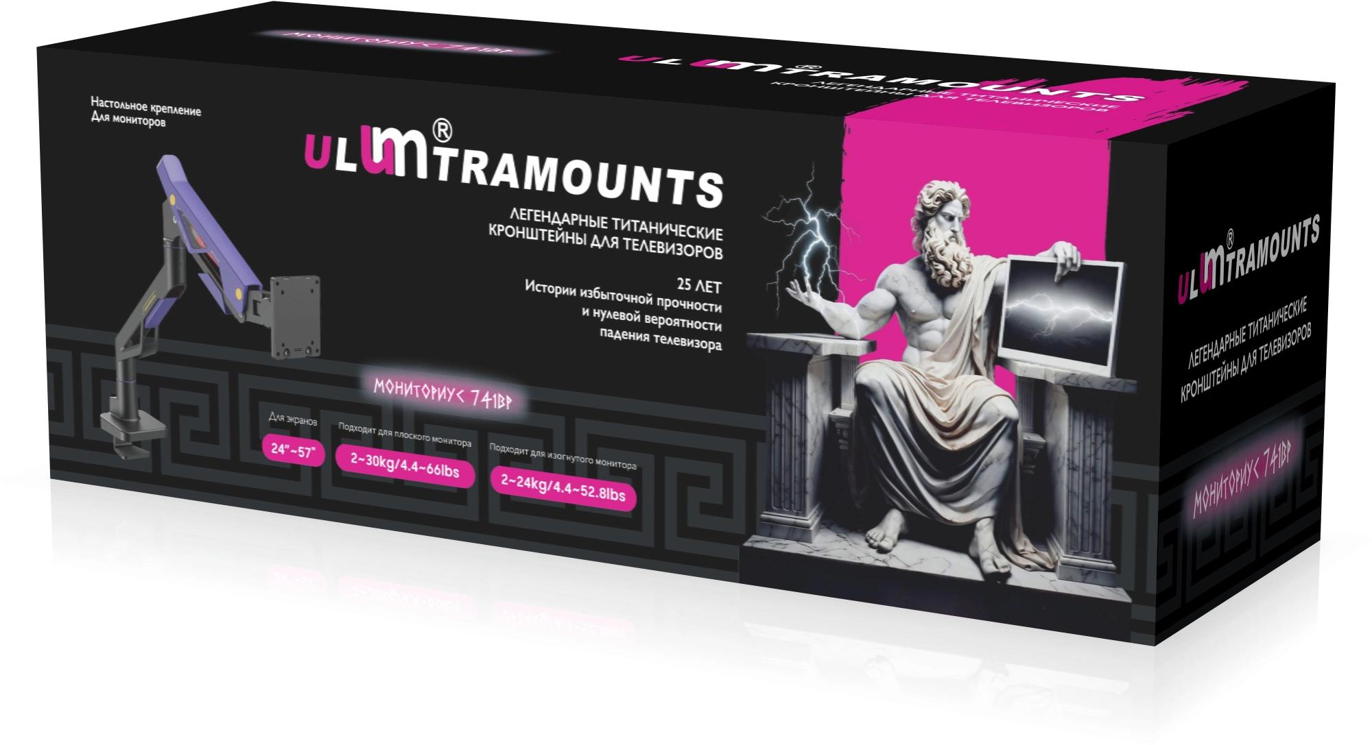 Кронштейн для мониторов Ultramounts UM741BP черный/фиолетовый 24"-57" макс.30кг крепление к столешнице поворот и наклон