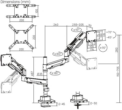 Кронштейн для мониторов Ultramounts UM744WB белый/синий 24"-57" макс.27кг крепление к столешнице поворот и наклон