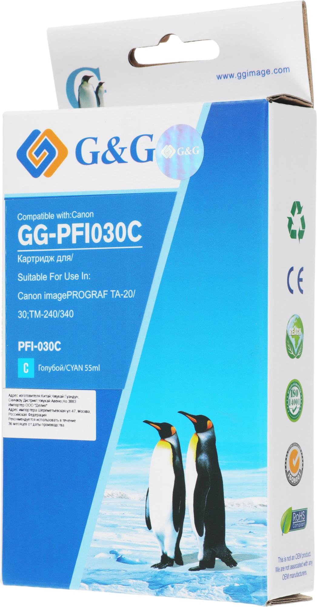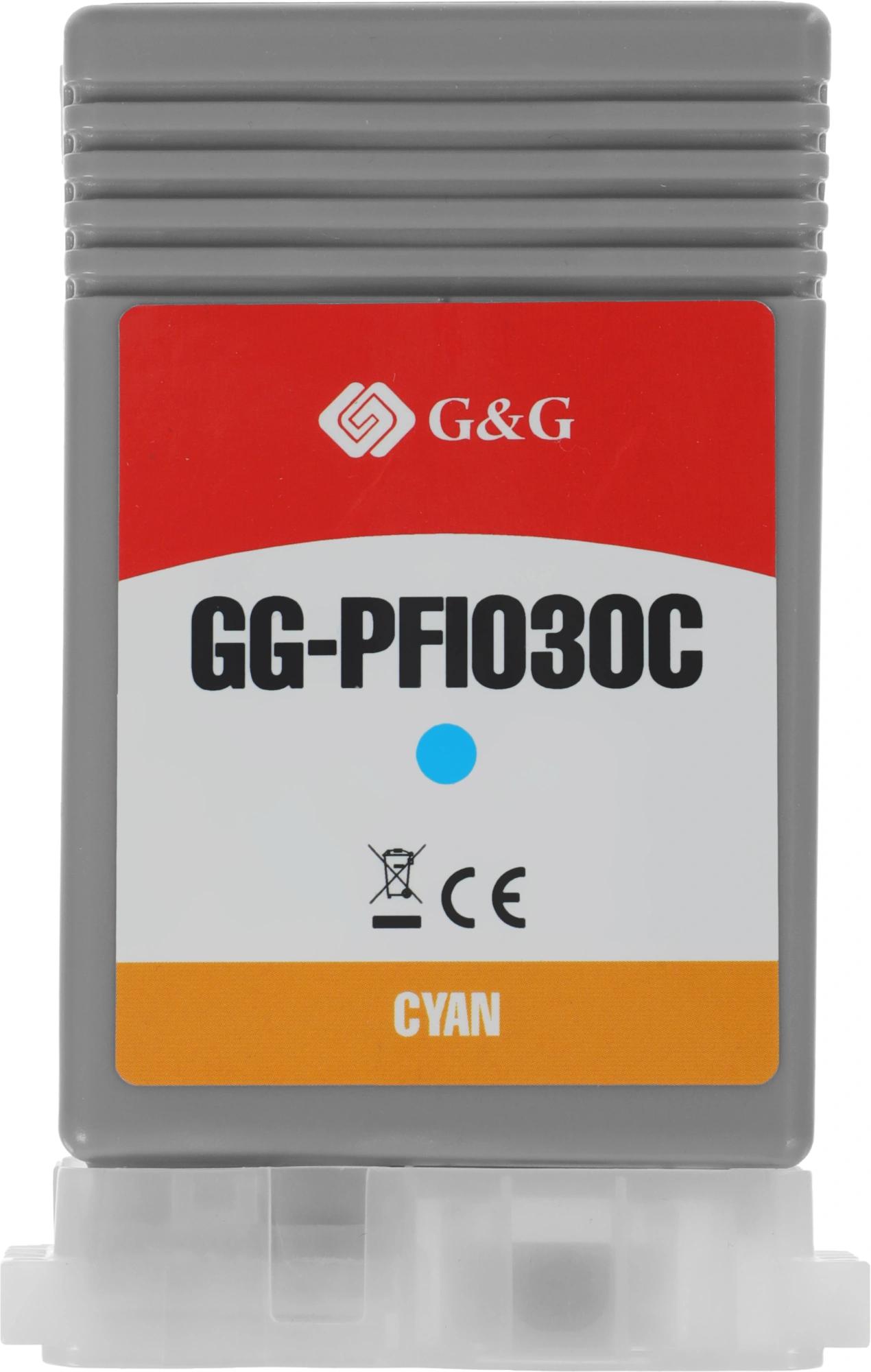 Картридж струйный G&G GG-PFI030C PFI-030C голубой (55мл) для Canon imagePrograf TA-20/30 TM-240/340
