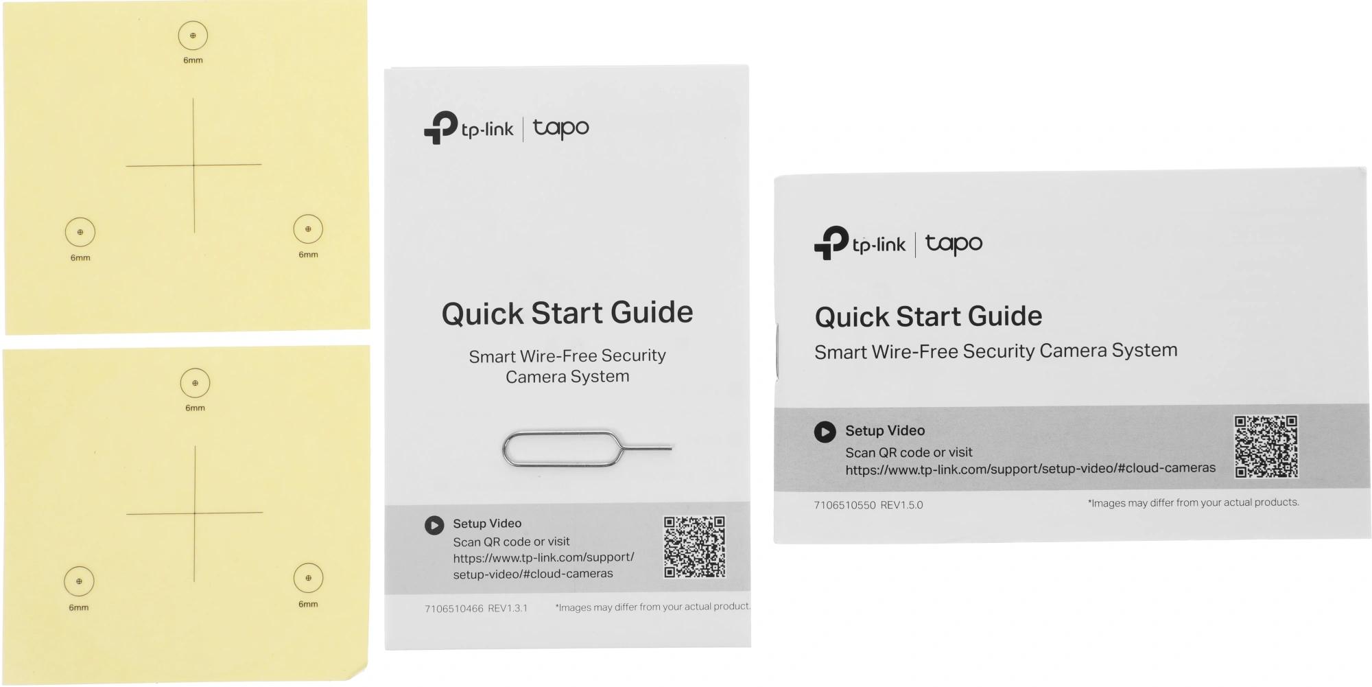 Камера Tapo C420 (2 шт.), Аккумулятор для камеры (2 шт.), Центр управления Tapo H200, USB-адаптер, Кабель USB-адаптера, Адаптер питания постоянного тока, Крепёжные винты, Крепёжные шаблоны, Крепления для камер, Краткое руководство по началу работы, Кабель Ethernet RJ45