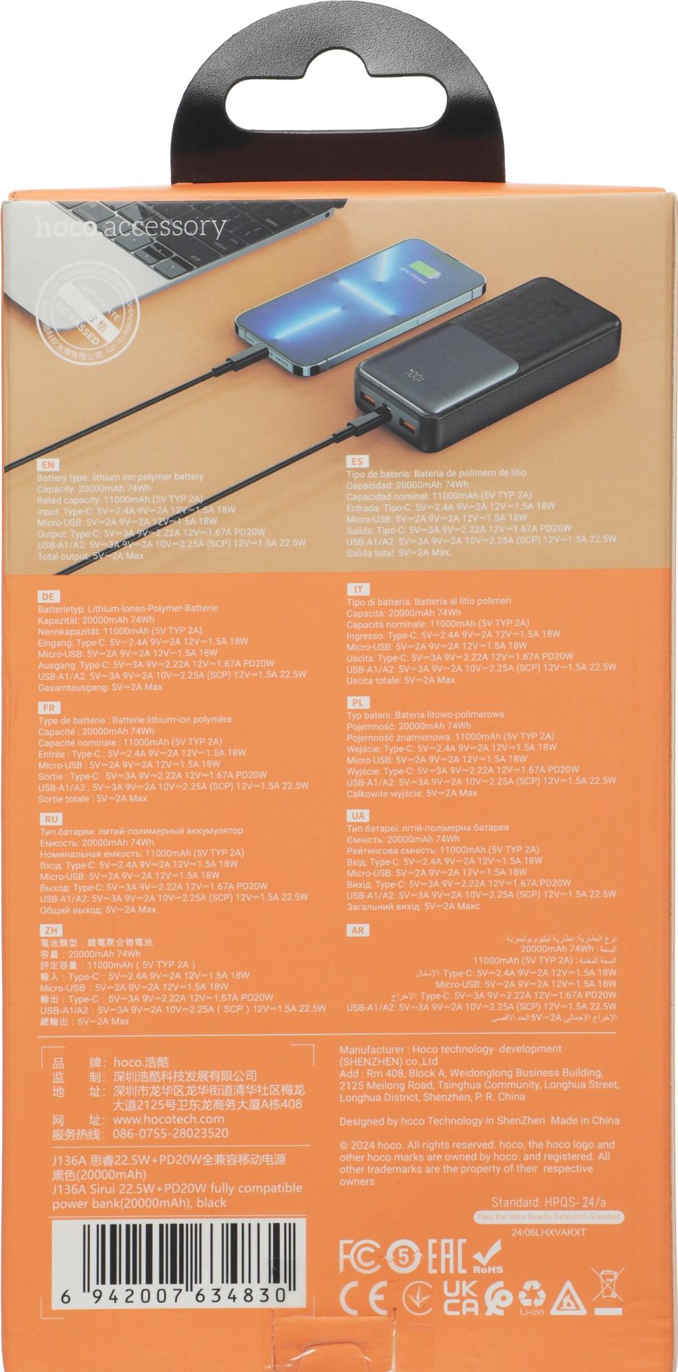 1 * USB-A2 – 5 В / 3 А, 9 В / 2 А, 10 В / 2, 25 А (SCP), 12 В / 1, 5 А – 22, 5 Вт.