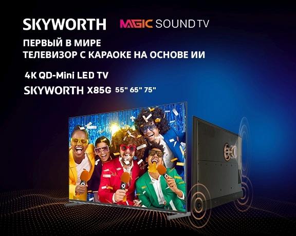 Телевизор LED Skyworth 75" 75X85G QD-Mini LED Magic Sound Karaoke TV Frameless черный/черный 4K Ultra HD 120Hz MEMC DVB-T DVB-T2 DVB-C DVB-S DVB-S2 USB WiFi Smart TV