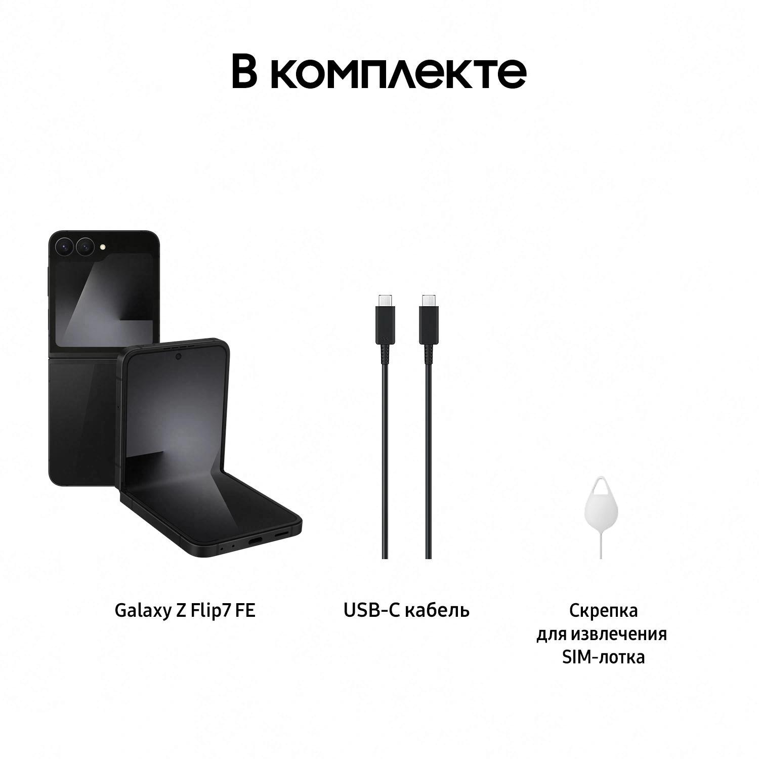 Смартфон Samsung SM-F761B Galaxy Flip7 FE 128Gb 8Gb черный раскладной 3G 4G 1Sim 6.7" 1080x2640 Android 16 50Mpix 802.11 a/b/g/n/ac/ax NFC GPS GSM900/1800 GSM1900 Protect