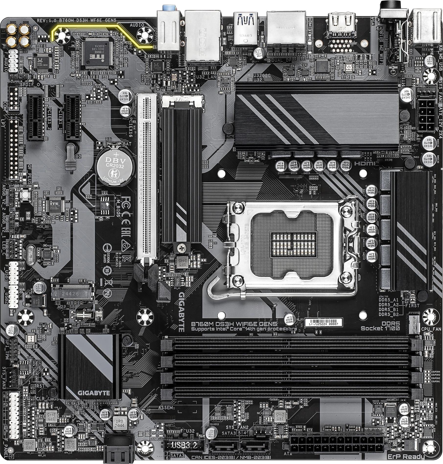 Материнская плата Gigabyte B760M DS3H WIFI6E GEN5 Soc-1700 Intel B760 4xDDR5 mATX AC`97 8ch(7.1) 2.5Gg RAID+HDMI+DP