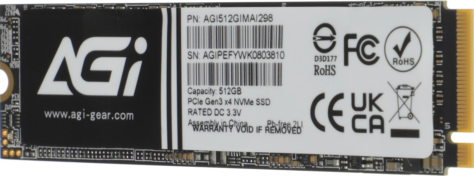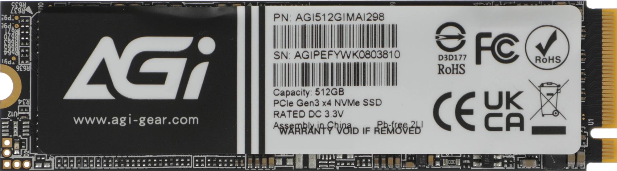 Накопитель SSD AGi PCIe 3.0 x4 512GB AGI512GIMAI298-CB AI298 M.2 2280