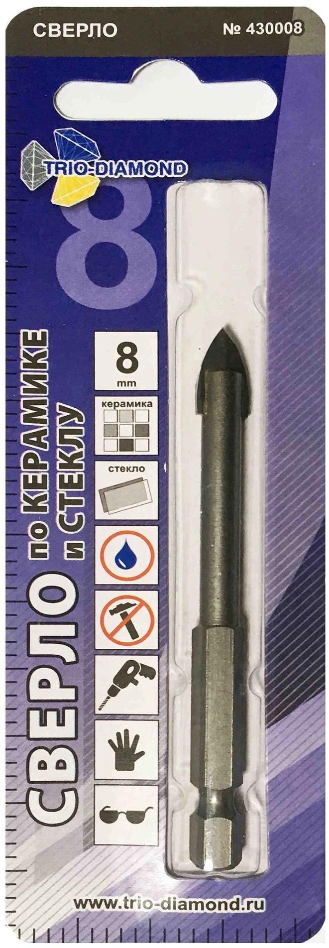 Сверло Trio-Diamond 430008 по кер/плит/стекл Д=8мм для дрелей/перфораторов