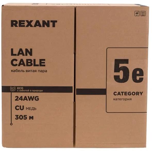 Кабель информационный Rexant 01-0041-R кат.5E U/UTP 4 пары 24AWG PVC внутренний 305м серый
