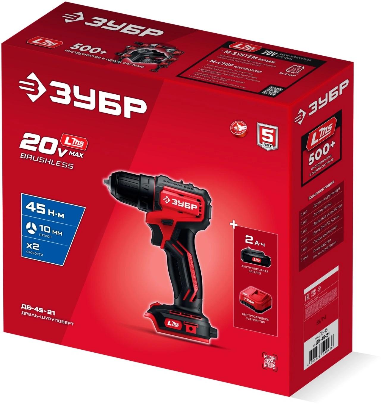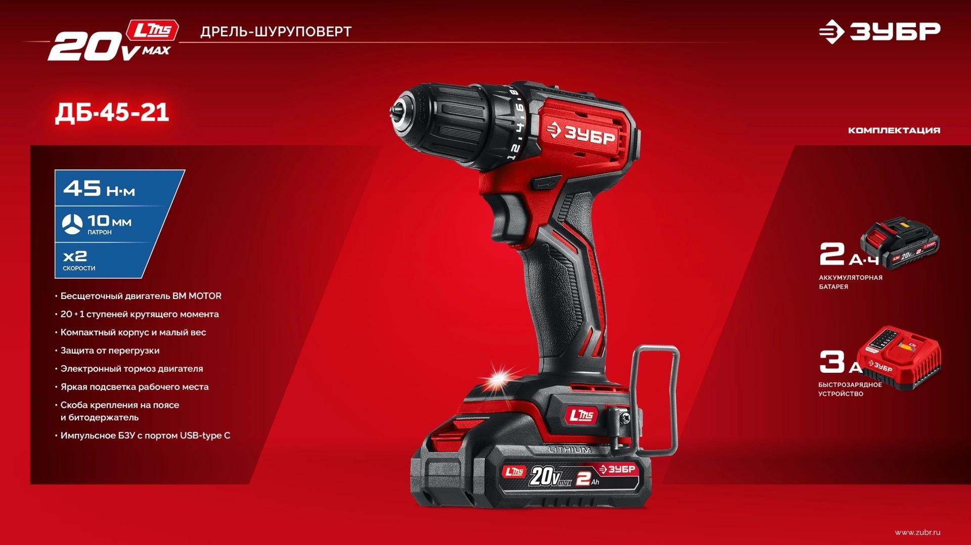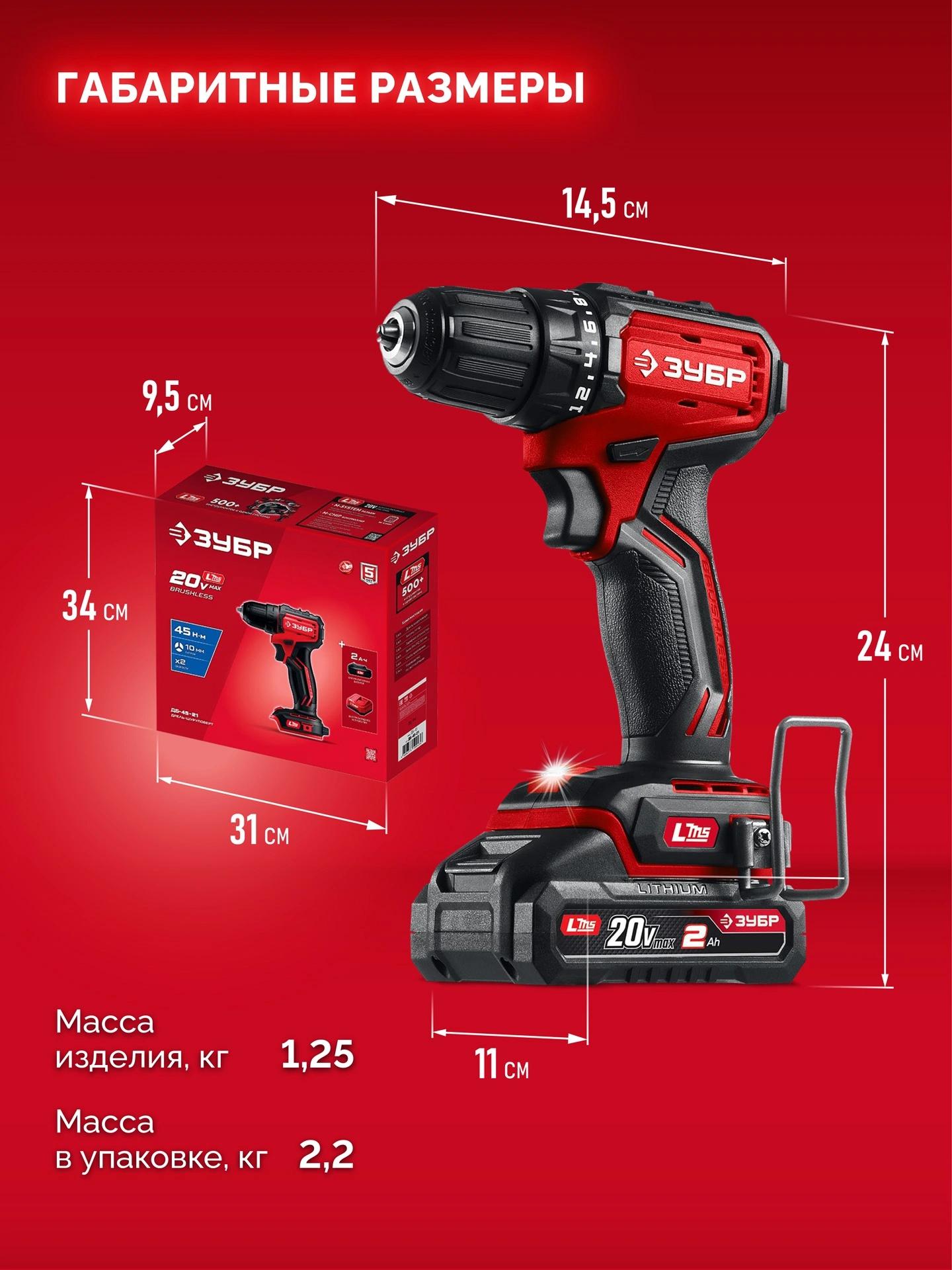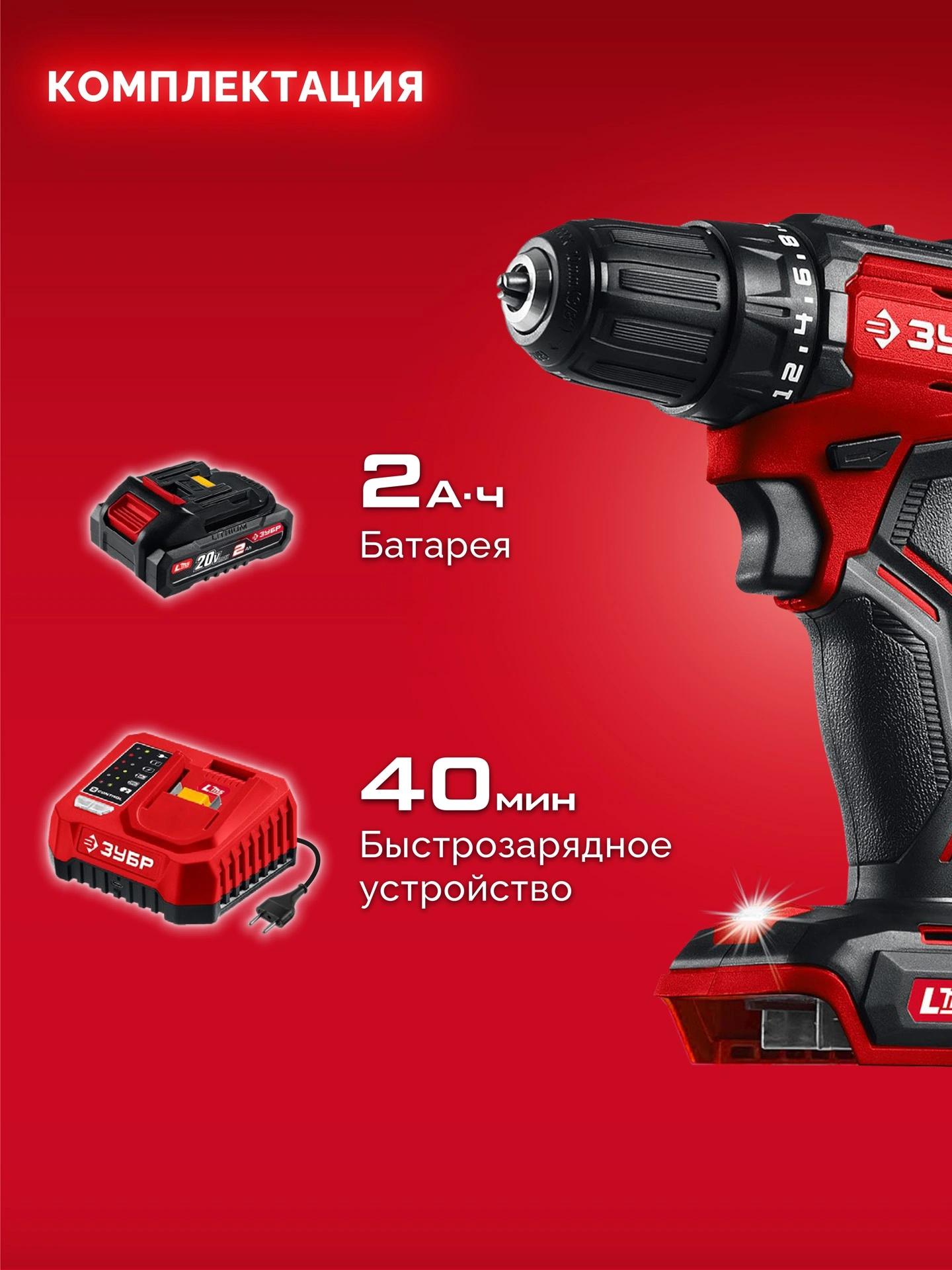 Дрель-шуруповерт - 1 шт. Аккумулятор - 1 шт. Зарядное устройство - 1 шт. Бита - 1 шт. Скоба крепления - 1 шт. Руководство по эксплуатации - 1 экз.
