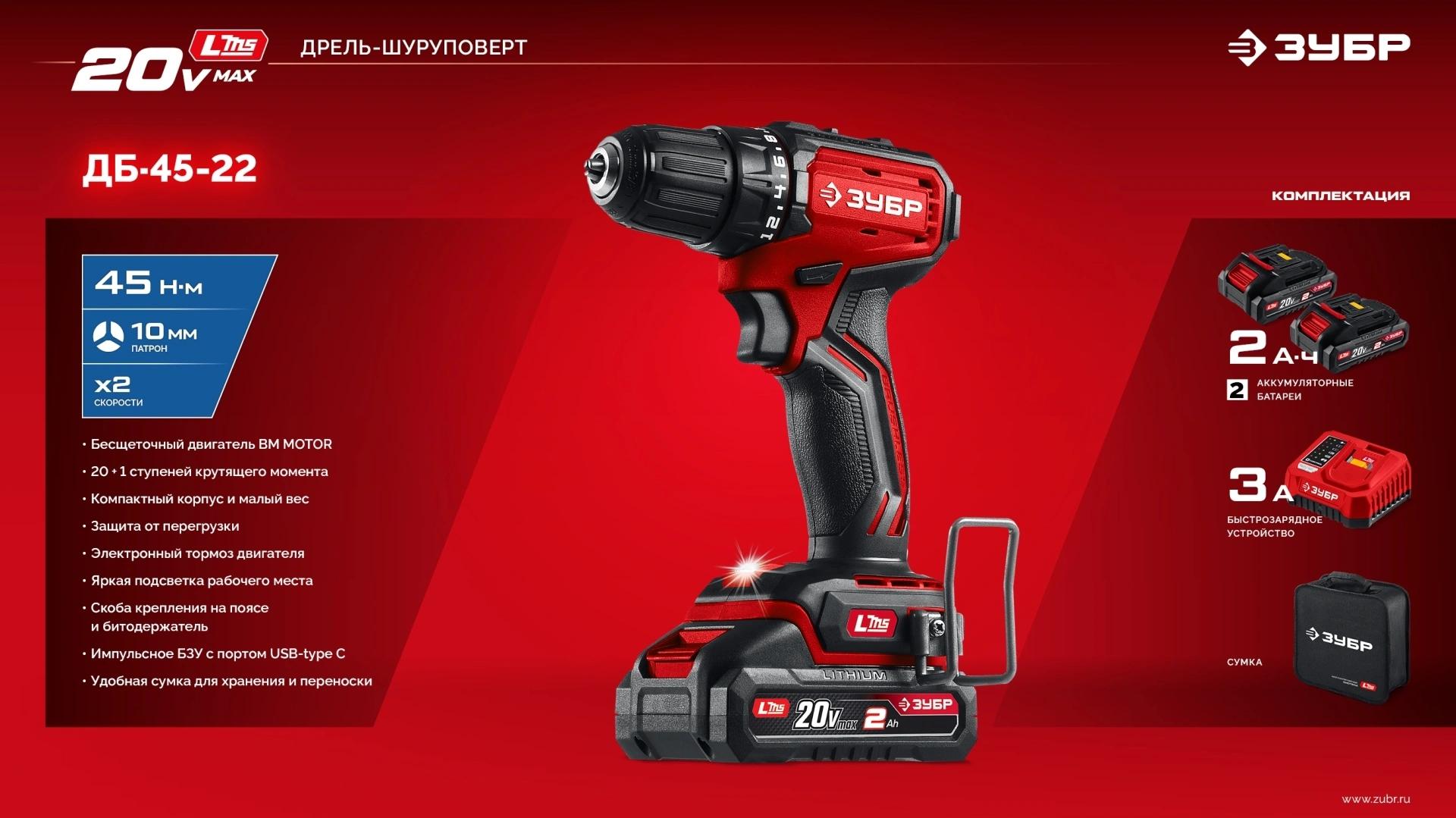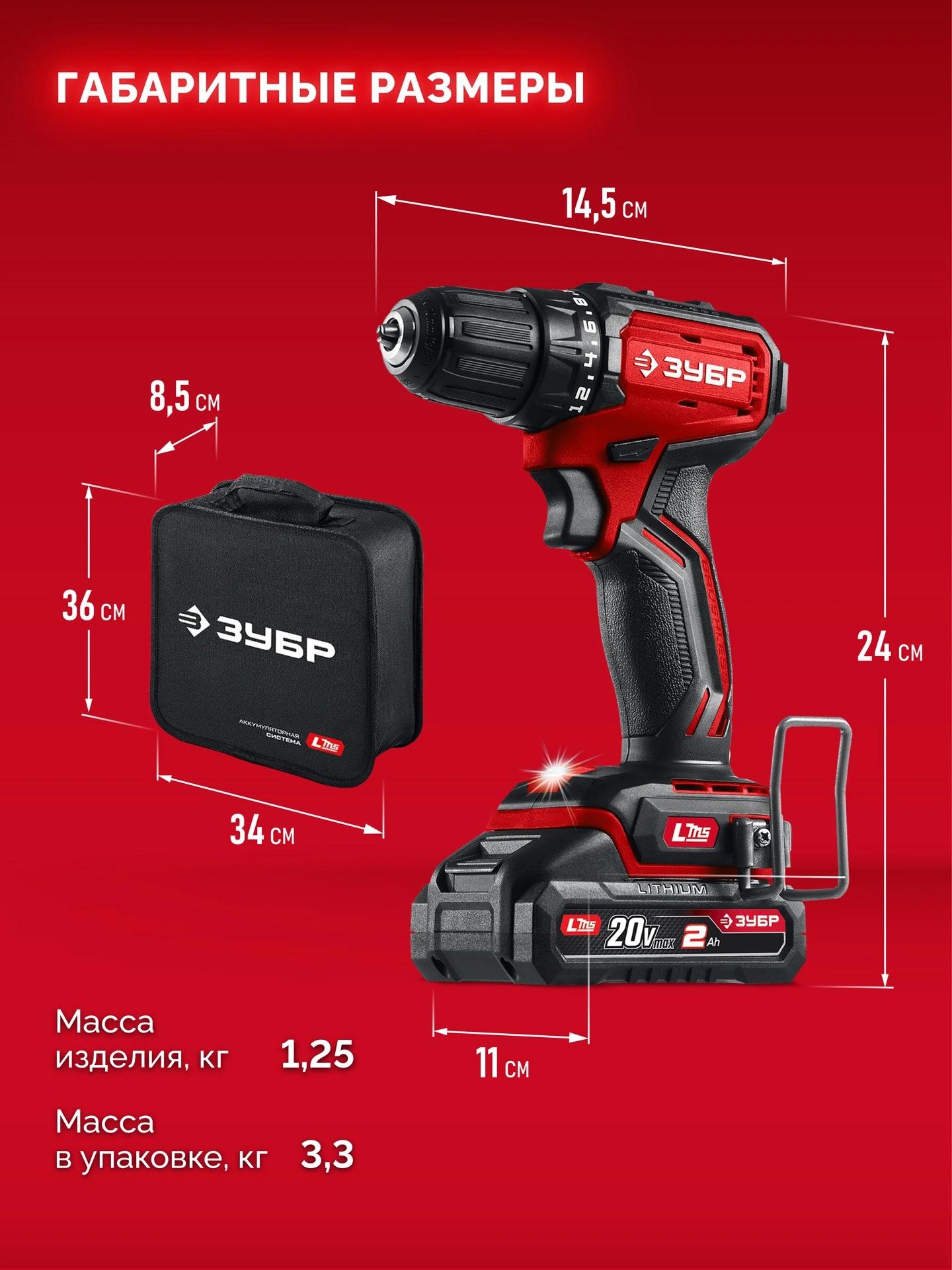 Дрель-шуруповерт - 1 шт. Аккумулятор - 2 шт. Зарядное устройство - 1 шт. Бита - 1 шт. Скоба крепления - 1 шт. Сумка - 1 шт. Руководство по эксплуатации - 1 экз.