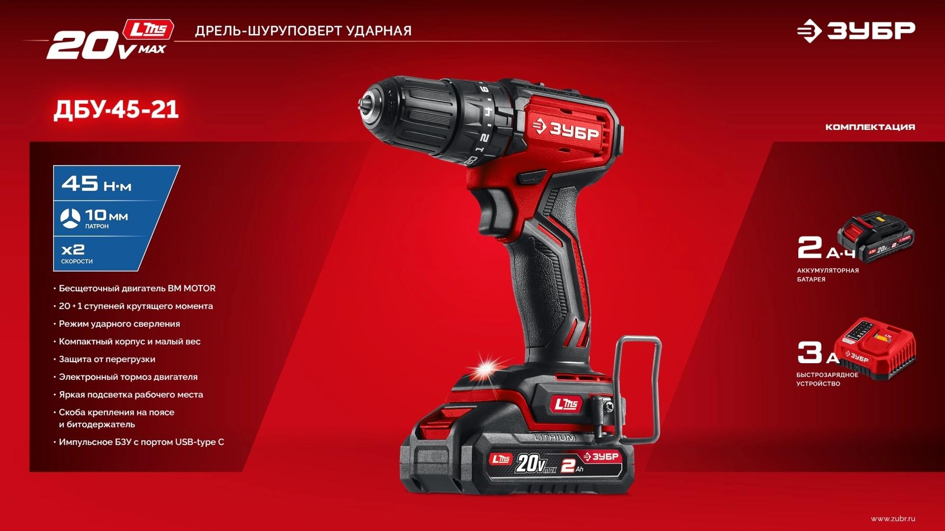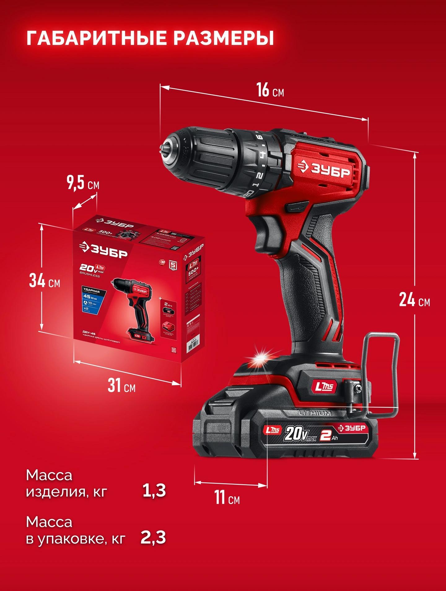 Дрель-шуруповерт - 1 шт. Аккумулятор - 1 шт. Зарядное устройство - 1 шт. Бита - 1 шт. Скоба крепления - 1 шт. Руководство по эксплуатации - 1 экз.