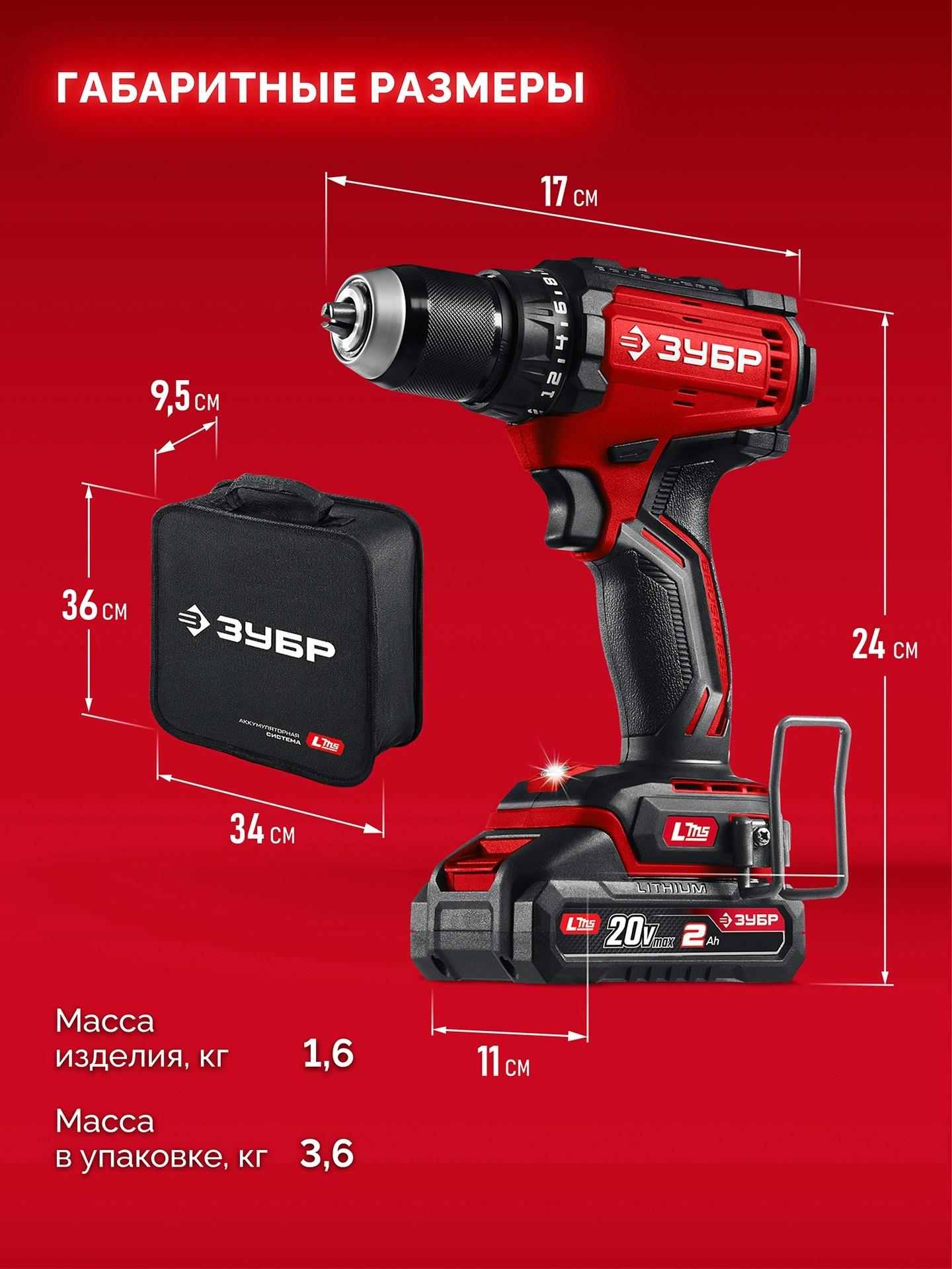 Дрель-шуруповерт - 1 шт. Аккумулятор - 2 шт. Зарядное устройство - 1 шт. Бита - 1 шт. Скоба крепления - 1 шт. Сумка - 1 шт. Руководство по эксплуатации - 1 экз.
