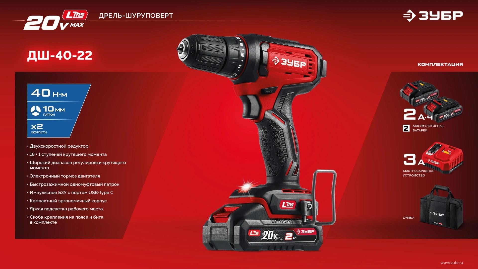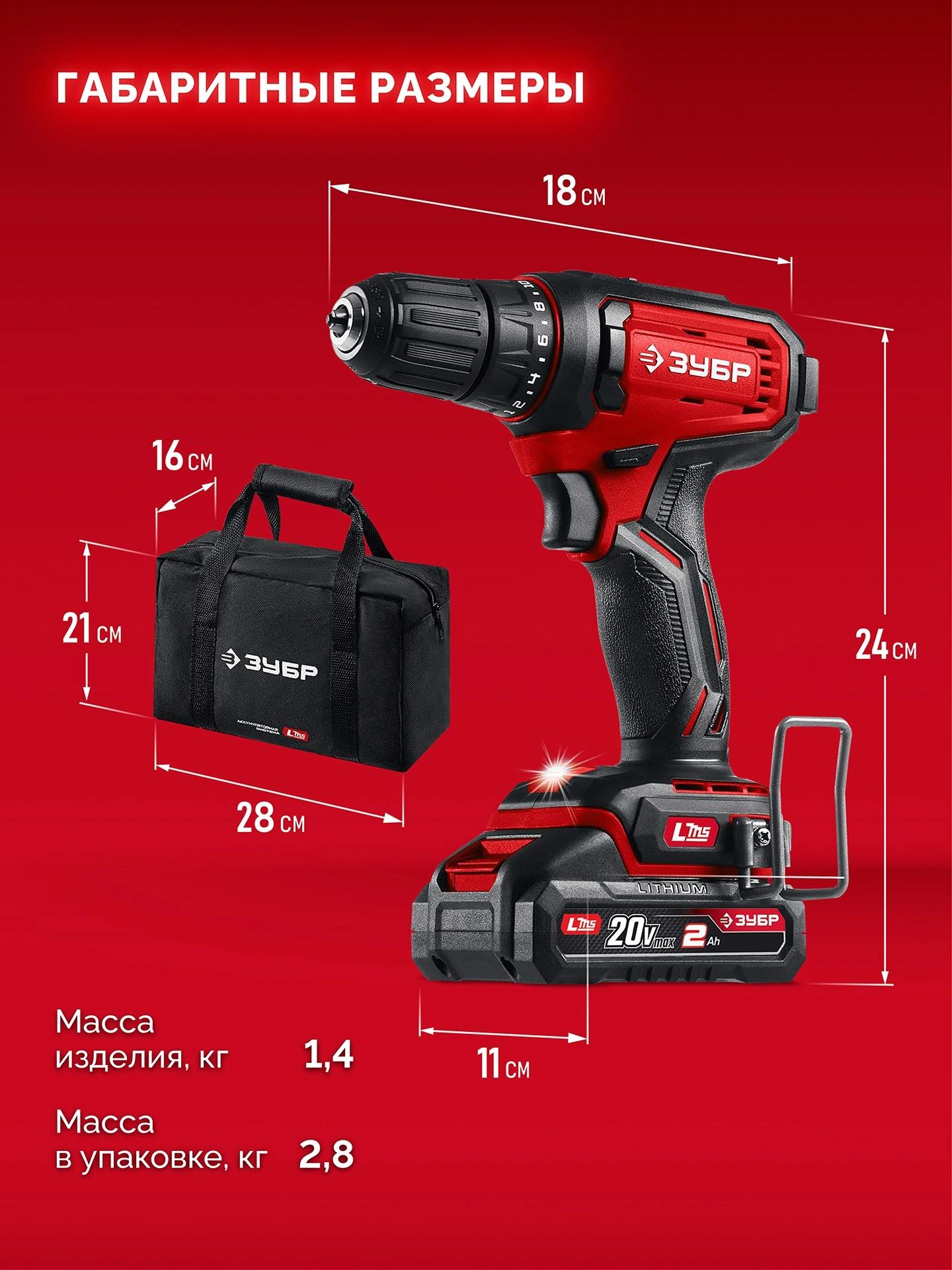 Дрель-шуруповерт - 1 шт. Аккумулятор - 2 шт. Зарядное устройство - 1 шт. Бита - 1 шт. Скоба крепления - 1 шт. Сумка - 1 шт. Руководство по эксплуатации - 1 экз.