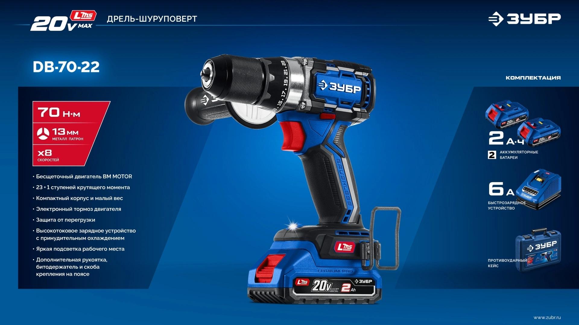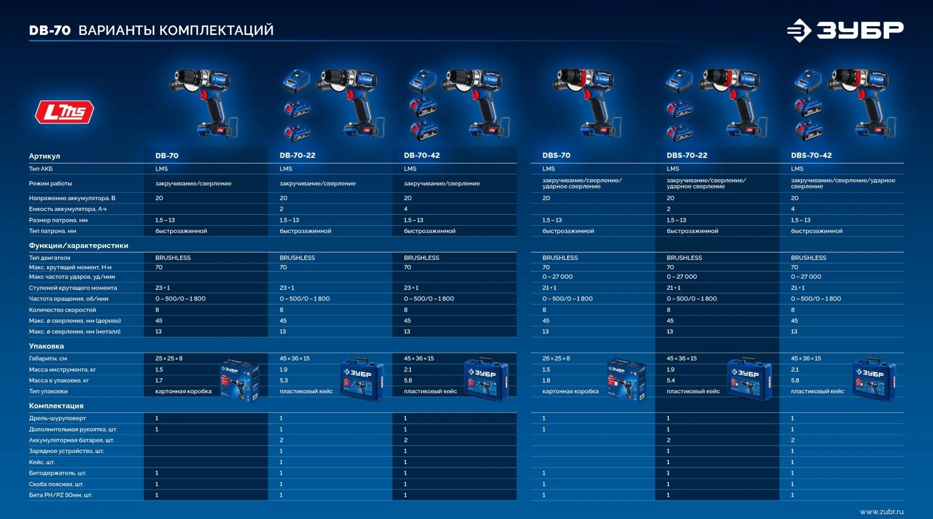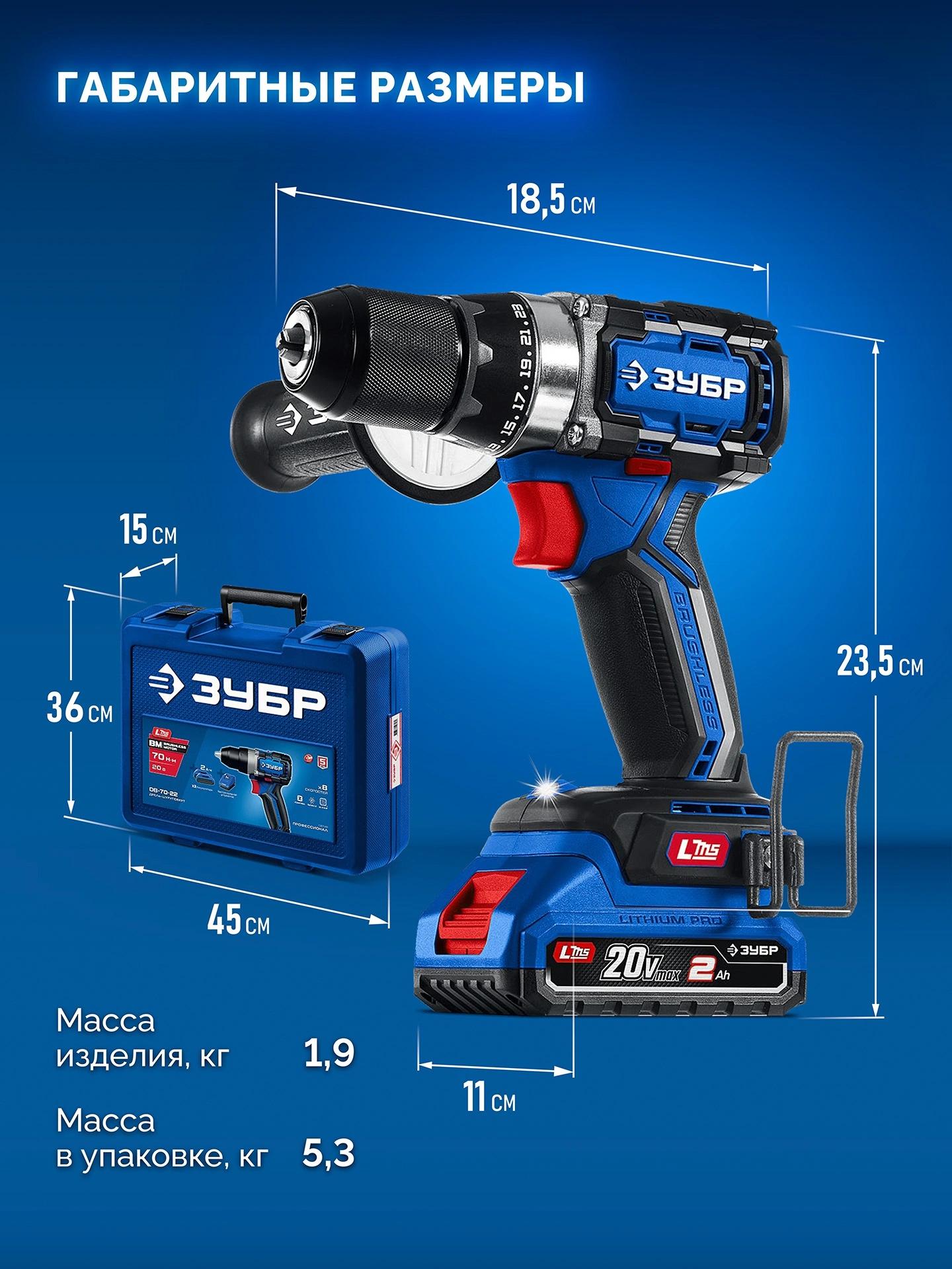 Дрель-шуруповерт - 1 шт. Аккумулятор - 2 шт. Зарядное устройство - 1 шт. Рукоятка дополнительная - 1 шт. Скоба поясная - 1 шт. Бита 50 мм PH, PZ - 1 шт. Битодержатель - 1 шт. Кейс - 1 шт. Руководство по эксплуатации - 1 экз.