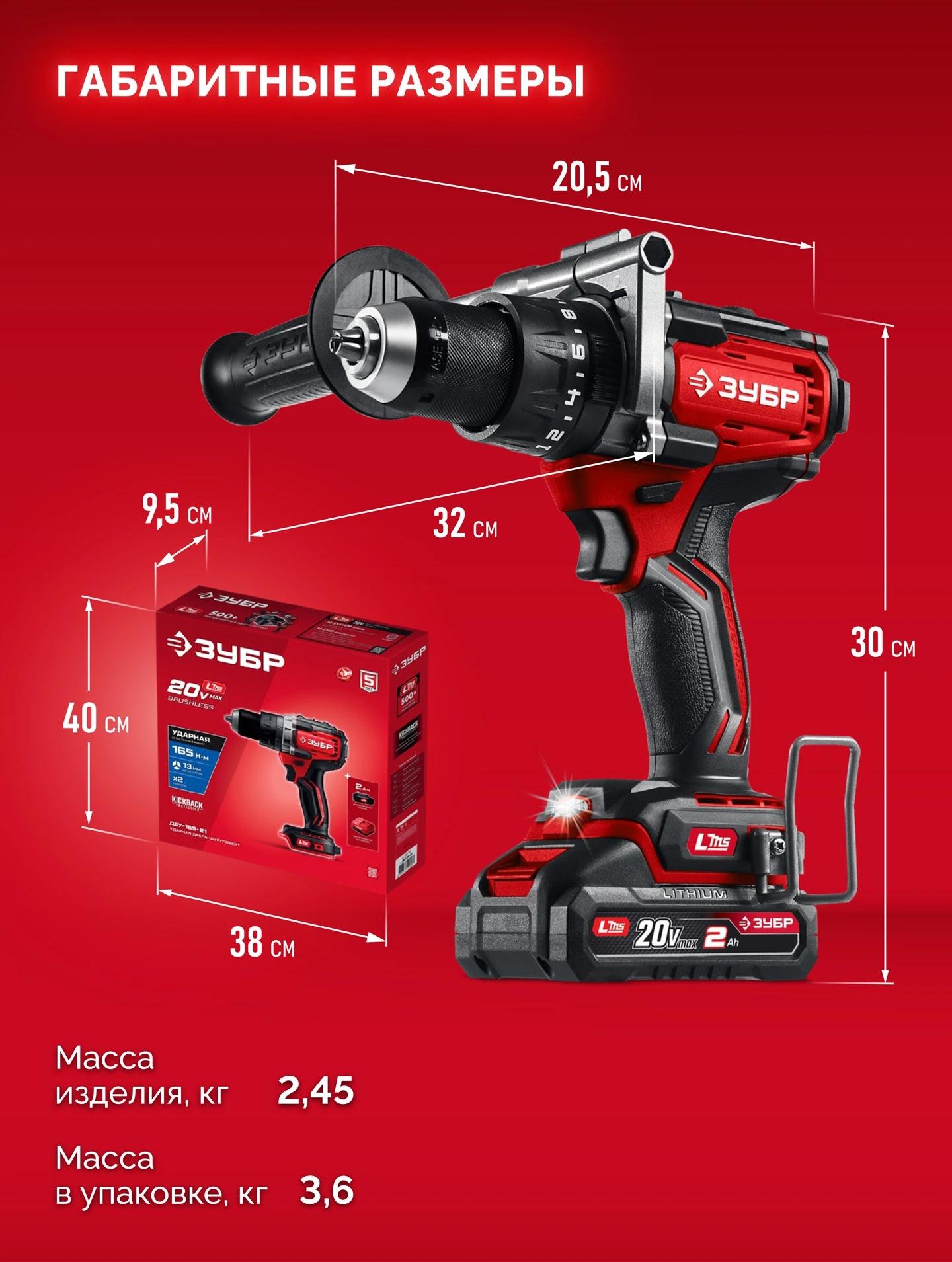 Дрель-шуруповерт - 1 шт. Рукоятка дополнительная - 1 шт. Аккумулятор - 1 шт. Зарядное устройство - 1 шт. Бита - 1 шт. Скоба крепления - 1 шт. Руководство по эксплуатации - 1 экз.