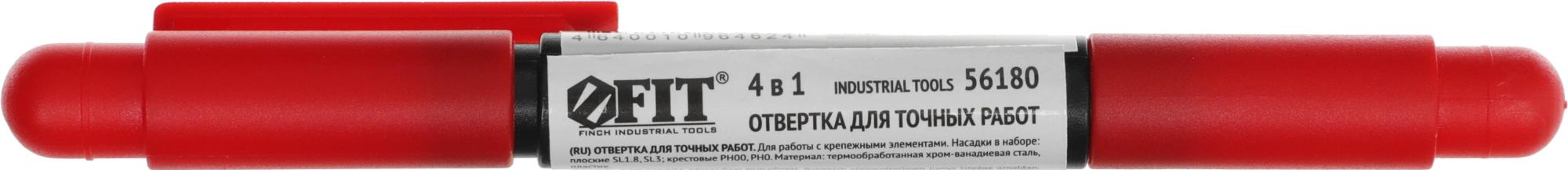 Отвертка для точных работ"мини" 4-в-1 переставная FIT 56180 Для точных работ. «Мини». Материал: CrV сталь, пластик