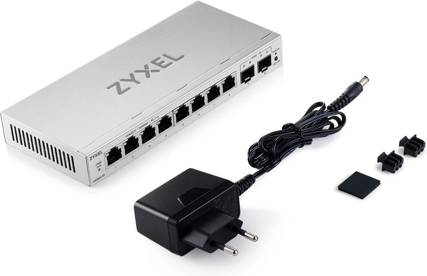 Коммутатор, блок питания, SFP заглушка, резиновые накладки, документация.