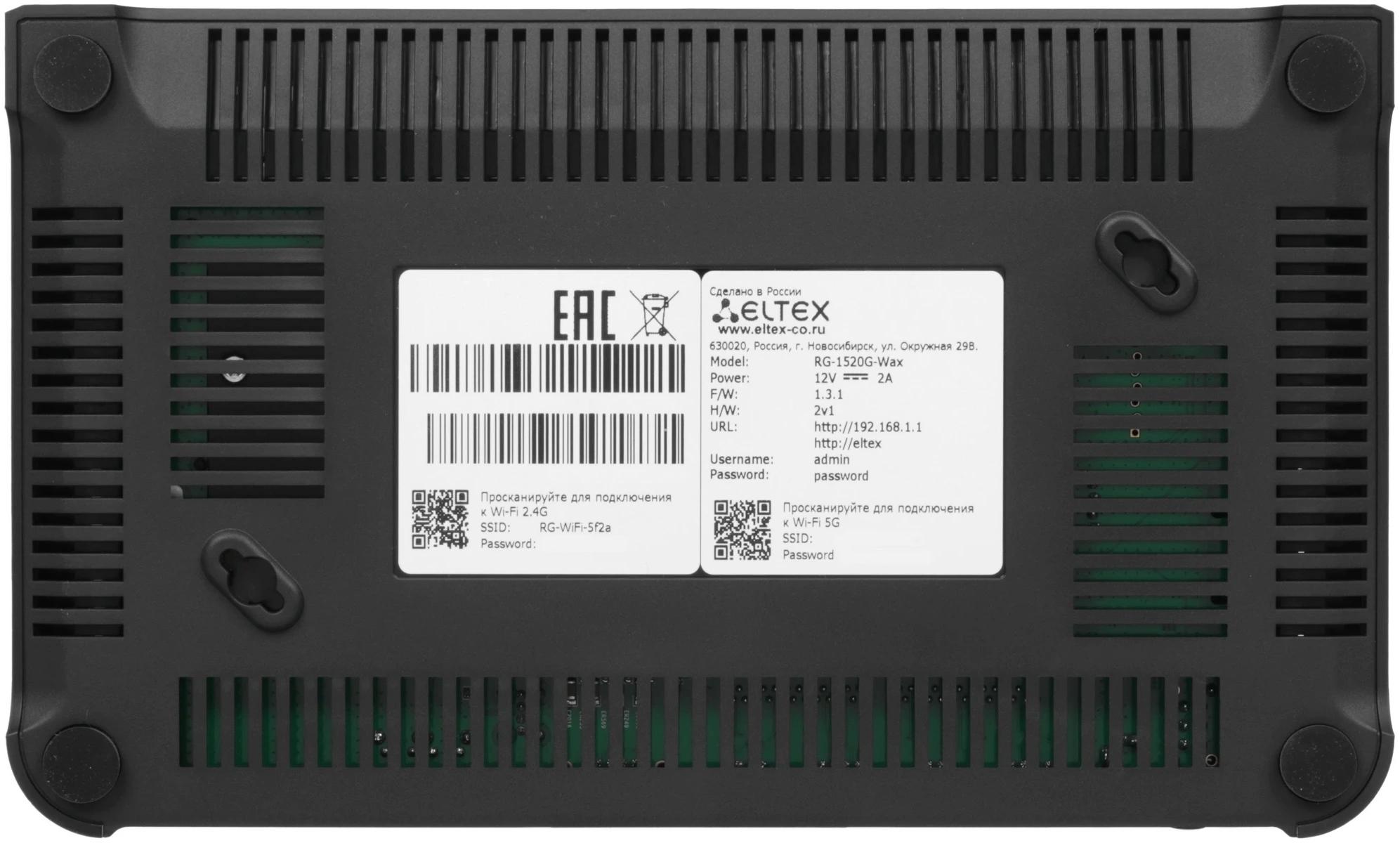 Абонентский маршрутизатор RG-1520G-Wax: 1 порт WAN 10/100/1000/2500 Base-T, 4 порта LAN 10/100/1000Base-T, 1xUSB, Wi-Fi (802.11ax, 2*2 - 573Мбит/с - 2.4ГГц + 802.11ax, 2*2 - 1201Мбит/с-5ГГц)