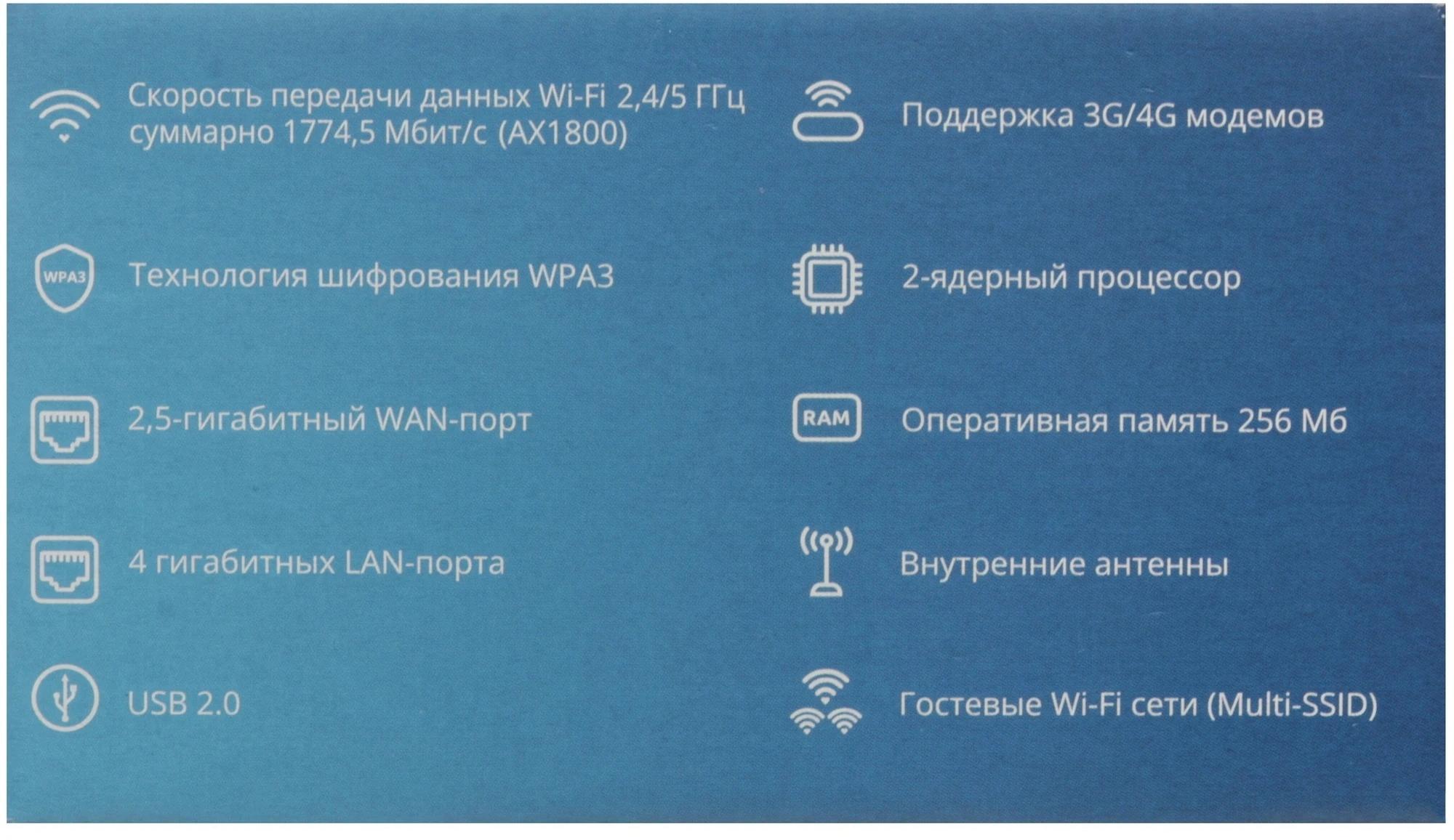 DHCP-сервер, DLNA, Dynamic DNS (DDNS), FTP-сервер, MESH, QoS, UPnP, VPN, WPS, поддержка IPTV, протокол IPv6