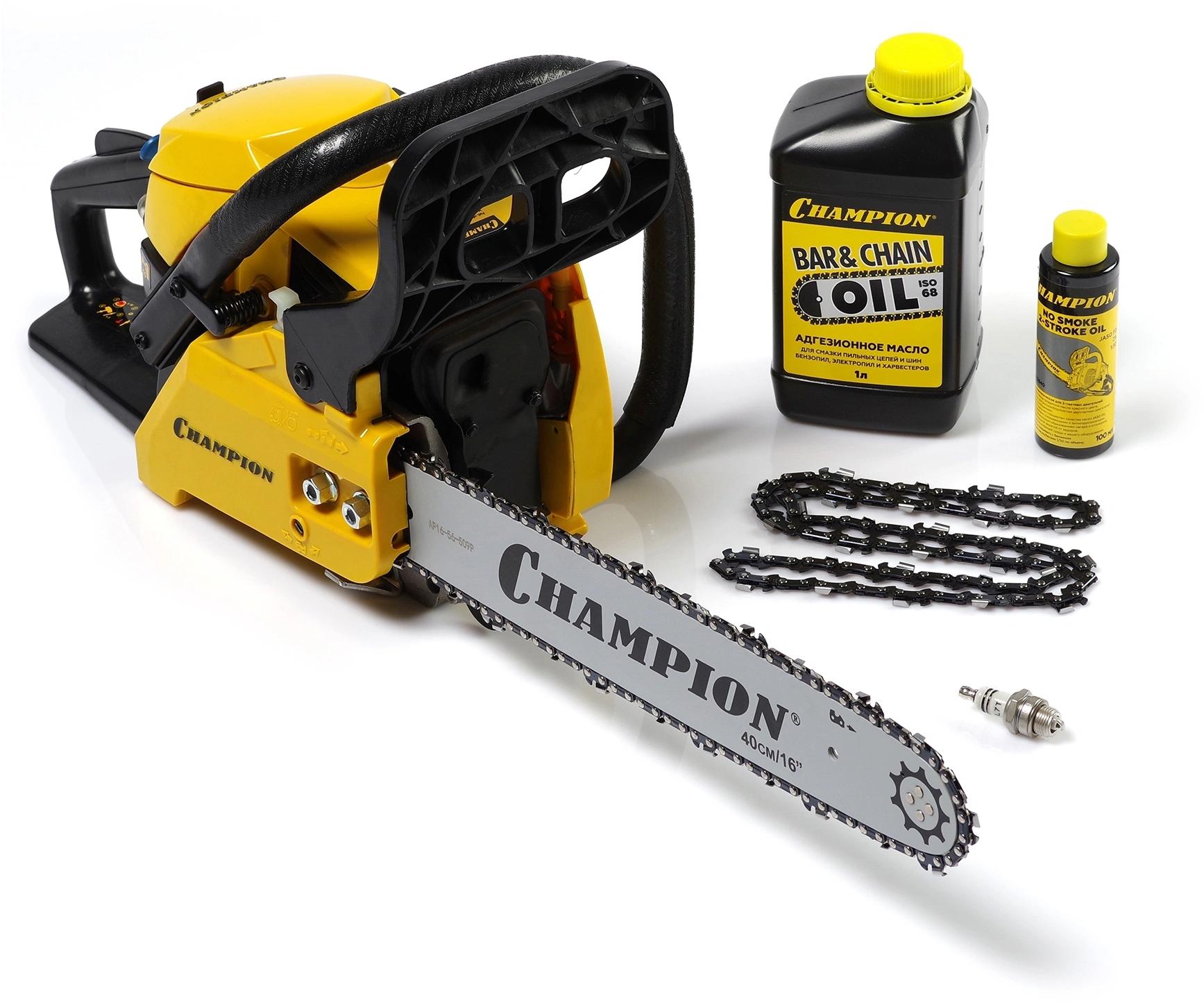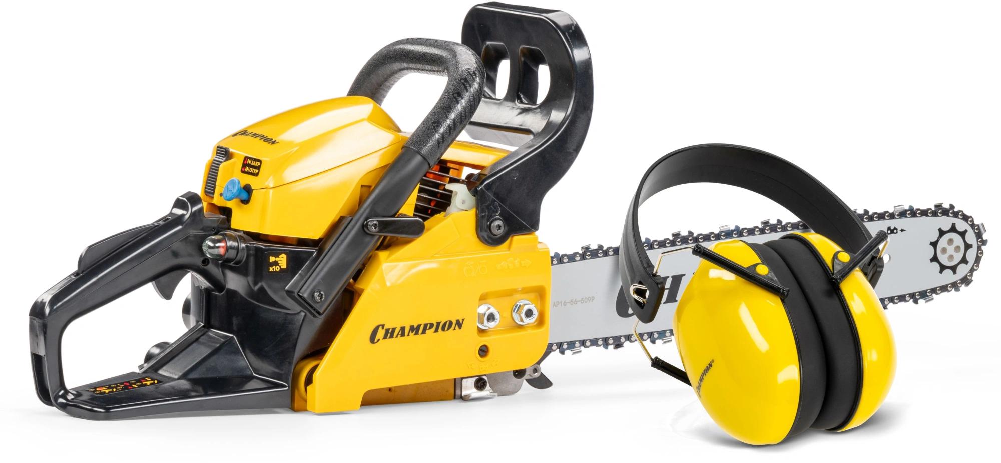 Легкая бензопила с двигателем 1, 5 кВт (2, 04 л.с.) и шиной 40 см, подходит для обрезки веток и заготовки дров. Вес без шины и цепи — 4, 7 кг. В комплекте — цепь, свеча зажигания, смазка и присадка для топлива. В подарок идут защитные наушники Champion C1002. Легкий старт, автоматическая смазка цепи.