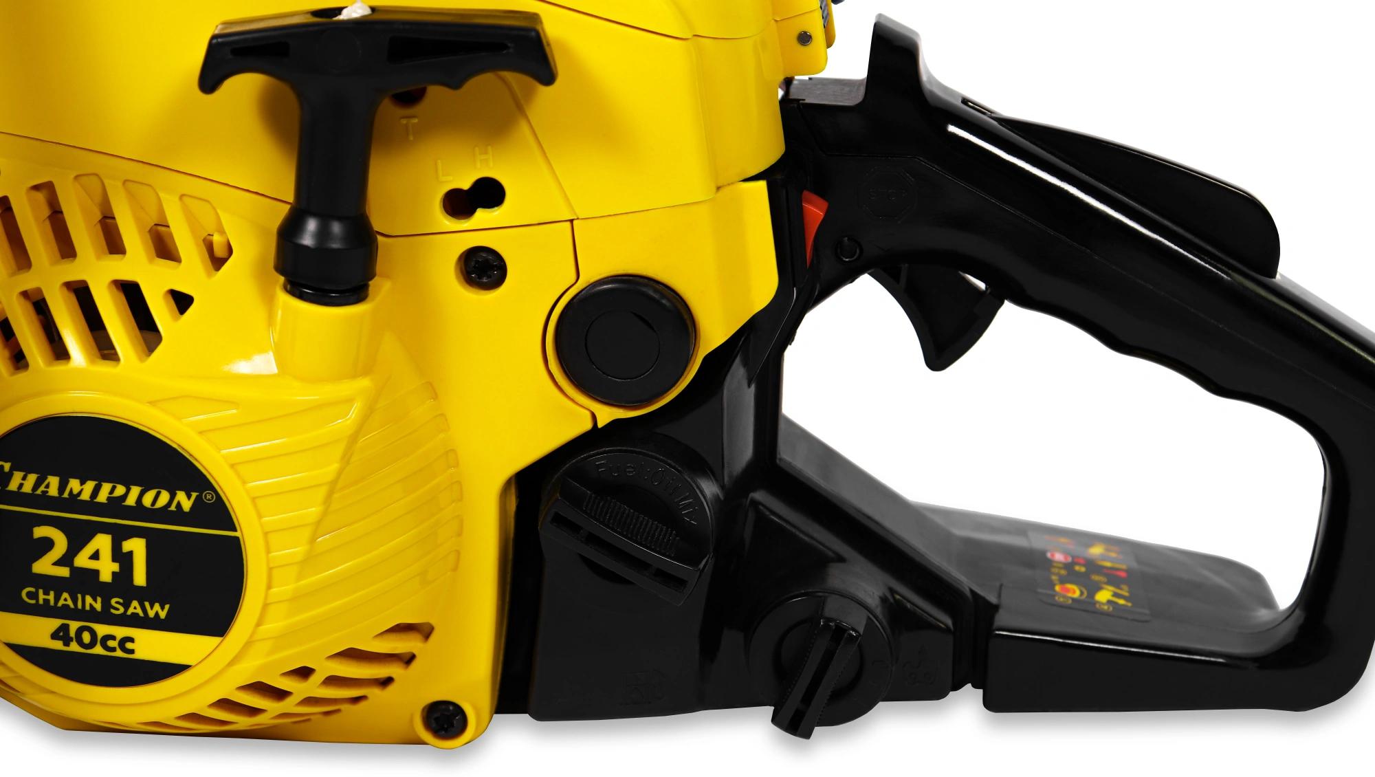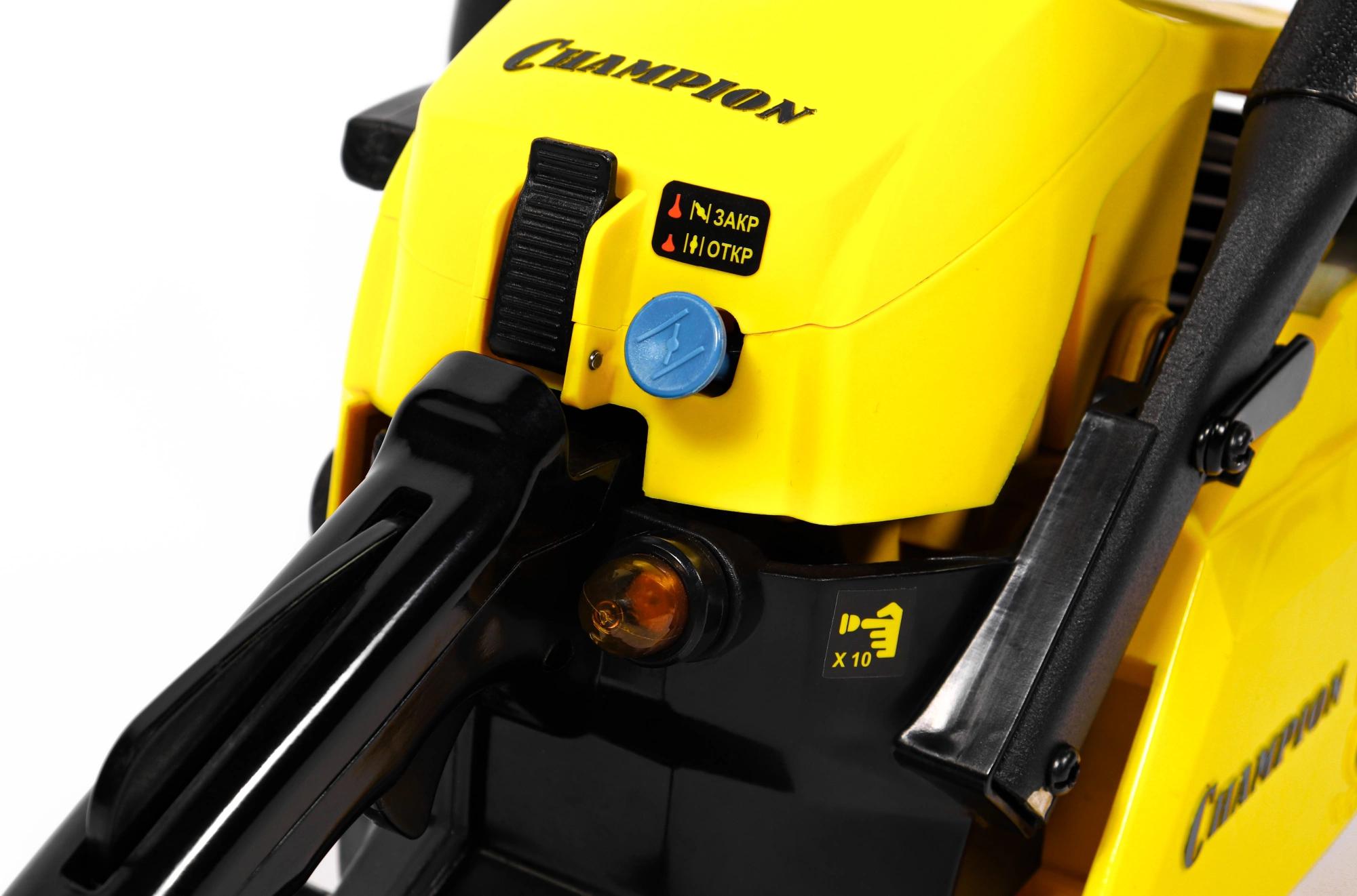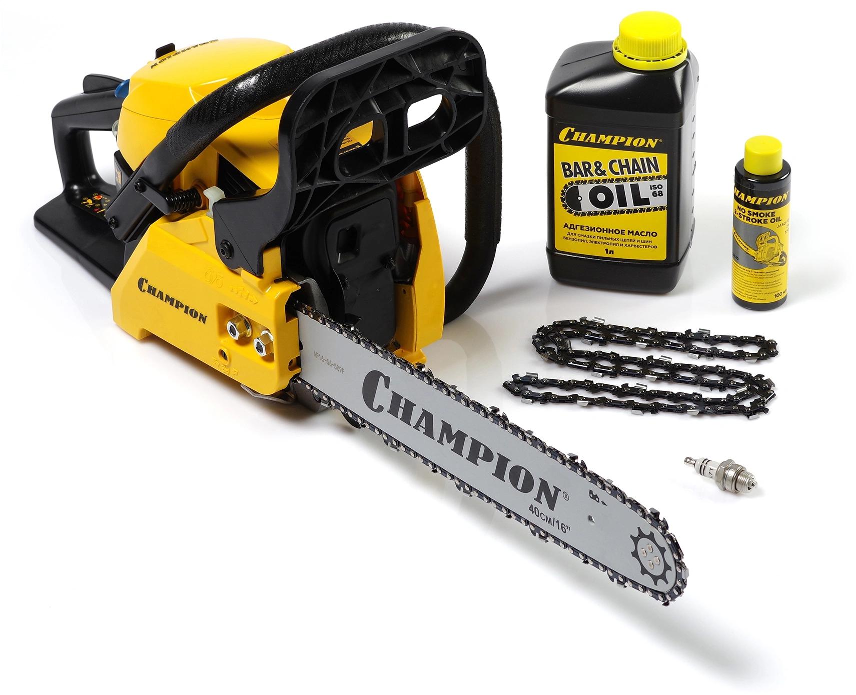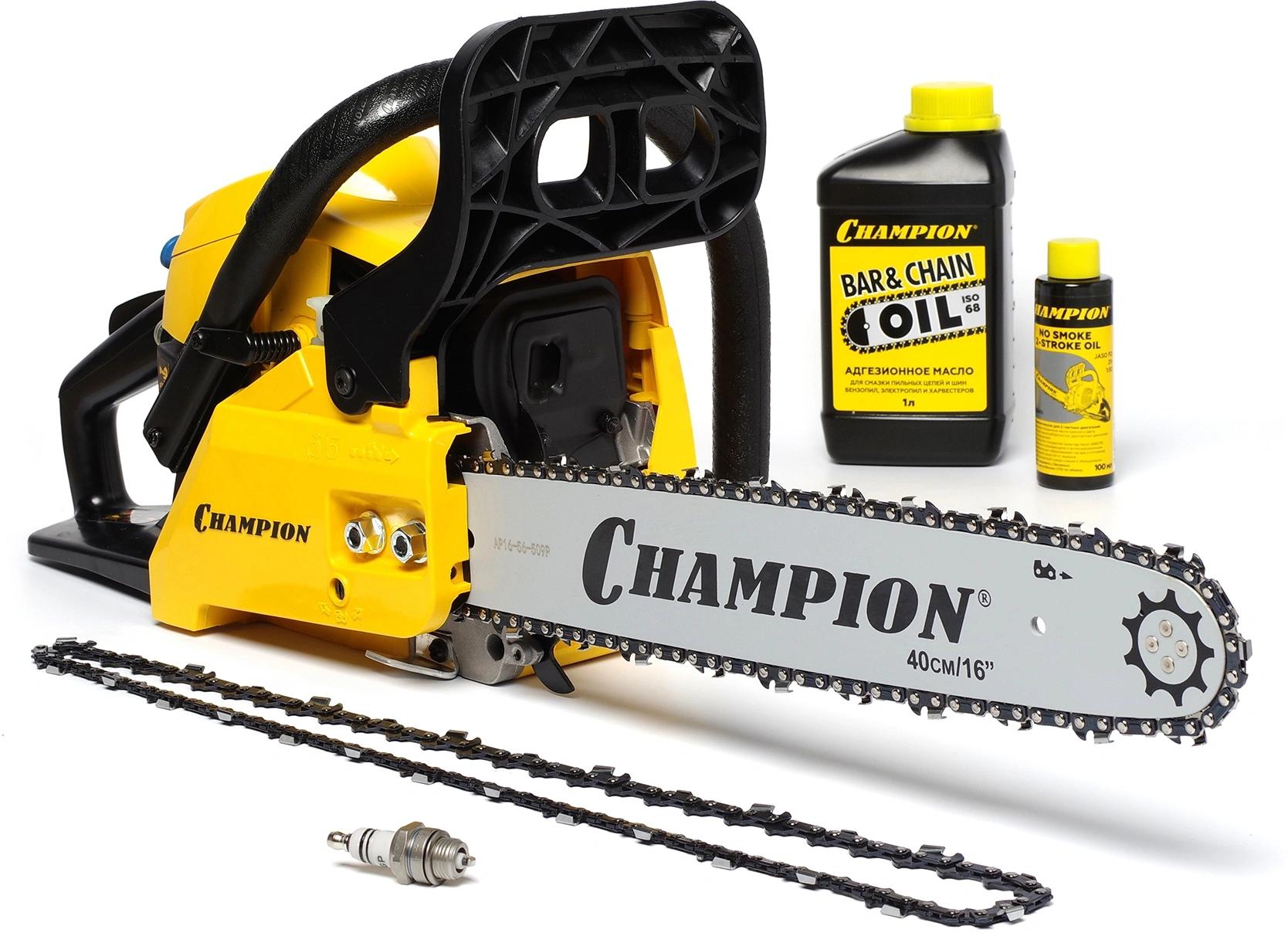Легкая бензопила с двигателем 1, 8 кВт (2, 45 л.с.) и шиной 40 см, подходит для обрезки веток и заготовки дров. Вес без шины и цепи — 4, 7 кг. В комплекте — цепь, свеча зажигания, смазка и присадка для топлива. В подарок идут защитные наушники Champion C1002. Легкий старт, автоматическая смазка цепи.