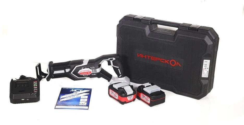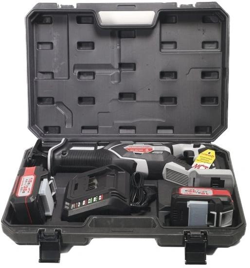 Пила ручная электрическая ножовочная аккумуляторная, батарея аккумуляторная - 2 шт., зу (опционально), полотно ножовочное по дереву, полотно ножовочное по металлу, руководство по эксплуатации и инструкция по безопасности, гарантийный талон, упаковка.
