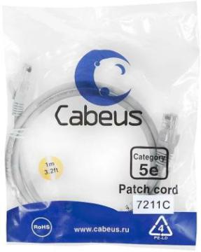 Патч-корд Cabeus PC-UTP-RJ45-CAT.5E-1M U/UTP RJ-45 вил.-вилка RJ-45 кат.5E 1м серый ПВХ