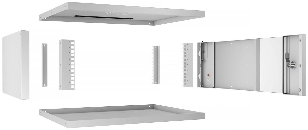 Шкаф коммутационный Cabeus (WSC-05D-4U55/45) настенный 4U 550x450мм пер.дв.стекл 30кг серый 390мм IP20 сталь