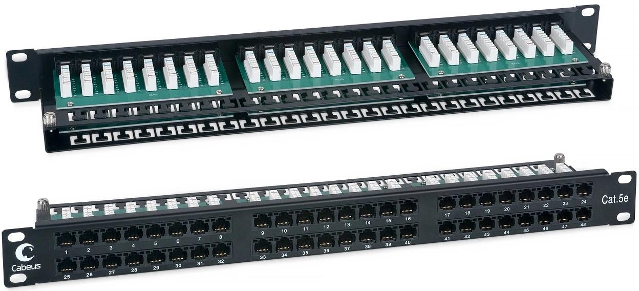 Патч-панель Cabeus PLHD-48-CAT.5E-DUAL 19" 1U 48xRJ45 кат.5E