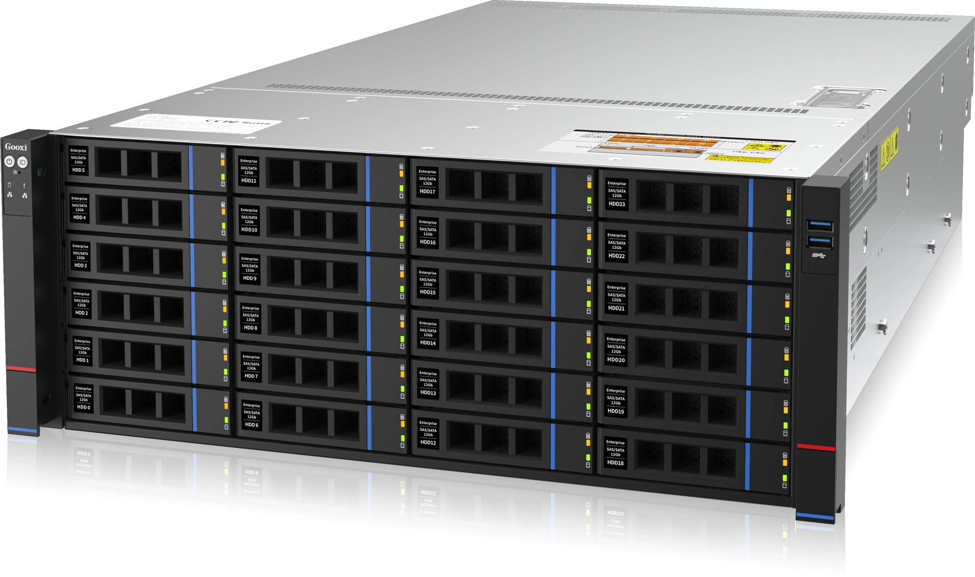 Корзина на 24 диска SAS/SATA 3.5/2.5 с активным backplane. Установлен контроллер LSI 9361-8I SGL 12Gb/s RAID 0/1/10/5/6/50/60 8i-ports 2Gb с батареей. Тыловая корзина на 2 системных диска SATA 2.5. Рельсы в комплекте.