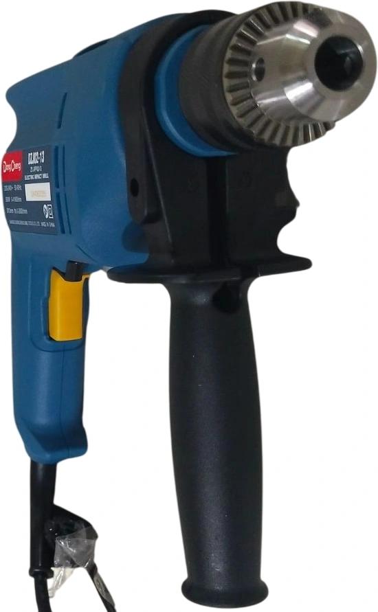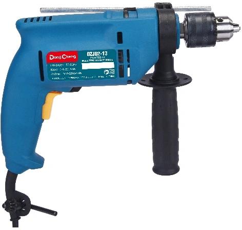 Дрель DZJ02-13, дополнительная рукоятка, ограничитель глубины, ключ для патрона, угольные щетки, картонная коробка.