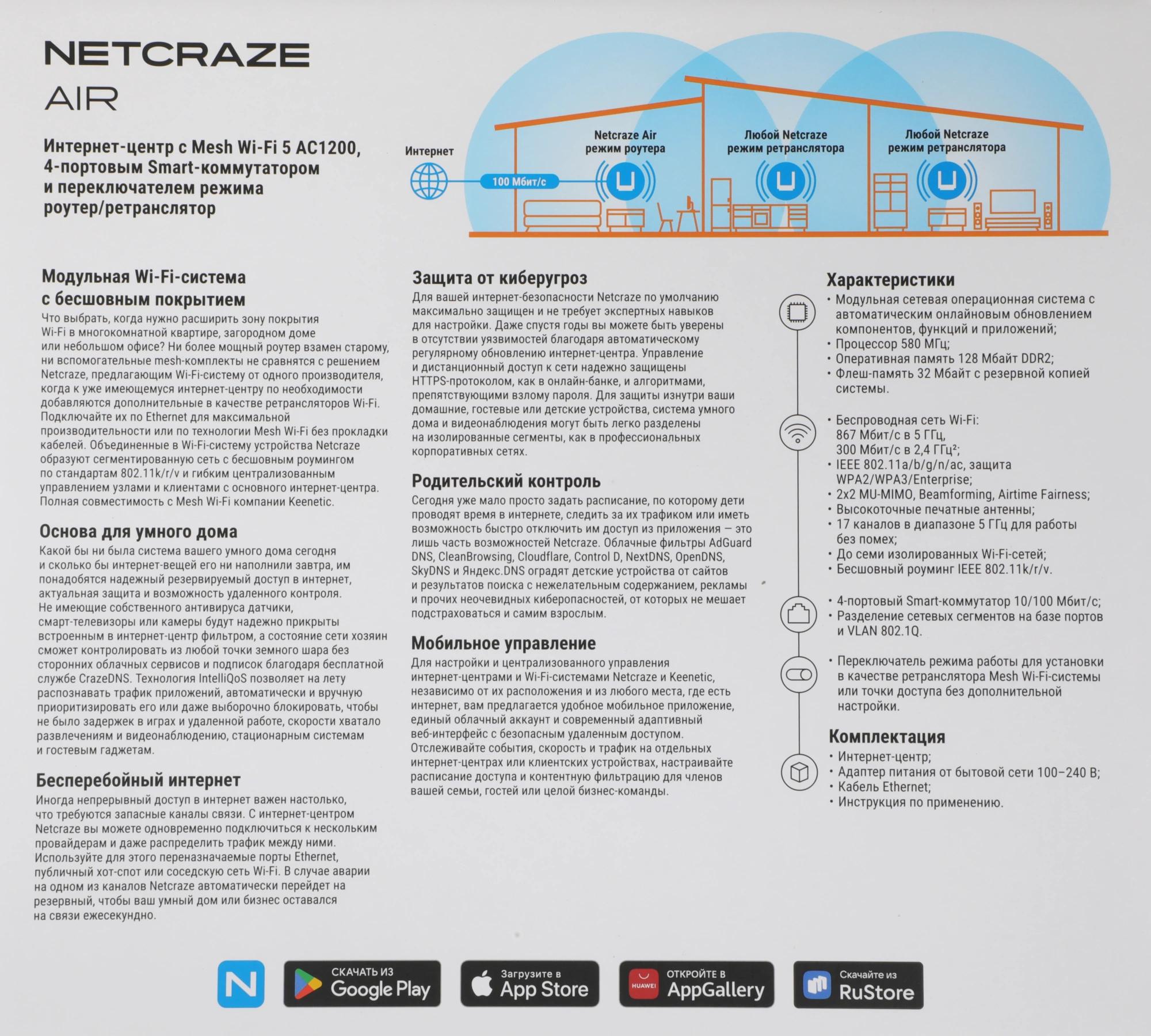 Роутер беспроводной Keenetic Netcraze Air, адаптер питания, кабель Ethernet, инструкция по применению.