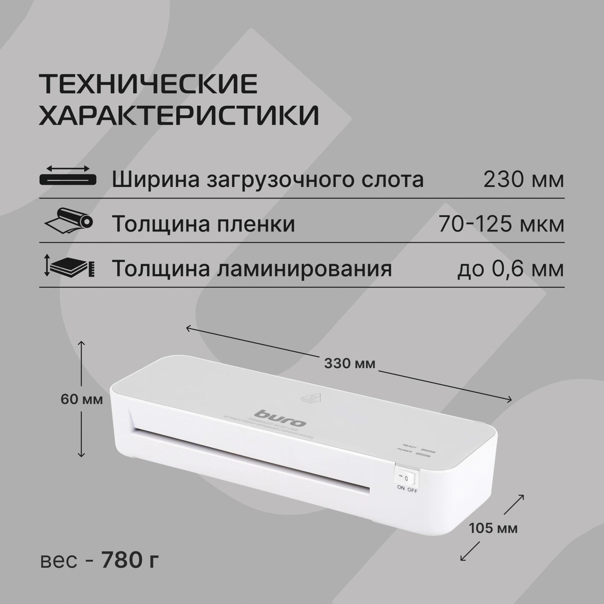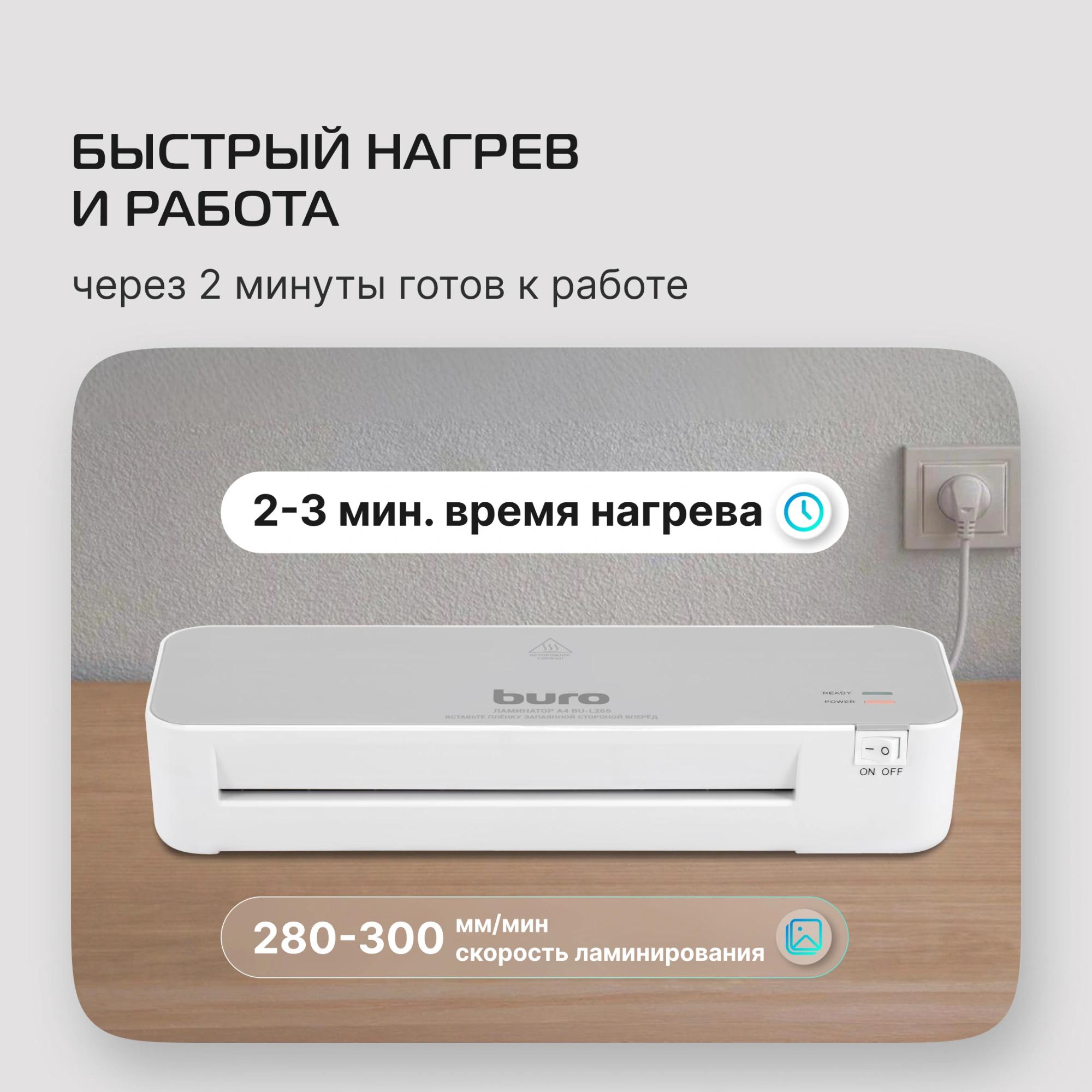 Ламинатор Buro BU-L265 белый/серый A4 (70-125мкм) 30см/мин (2вал.) хол.лам. лам.фото