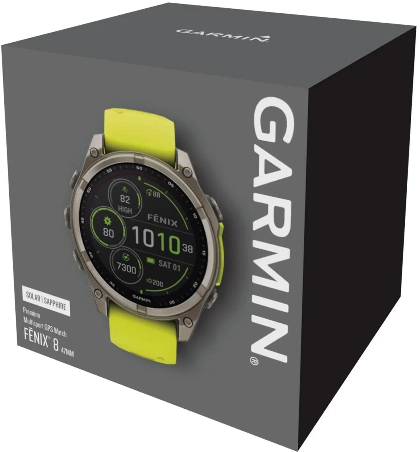 Смарт-часы Garmin Fenix 8 47мм 1.3" AMOLED корп.серебристый рем.желтый (010-02906-21)