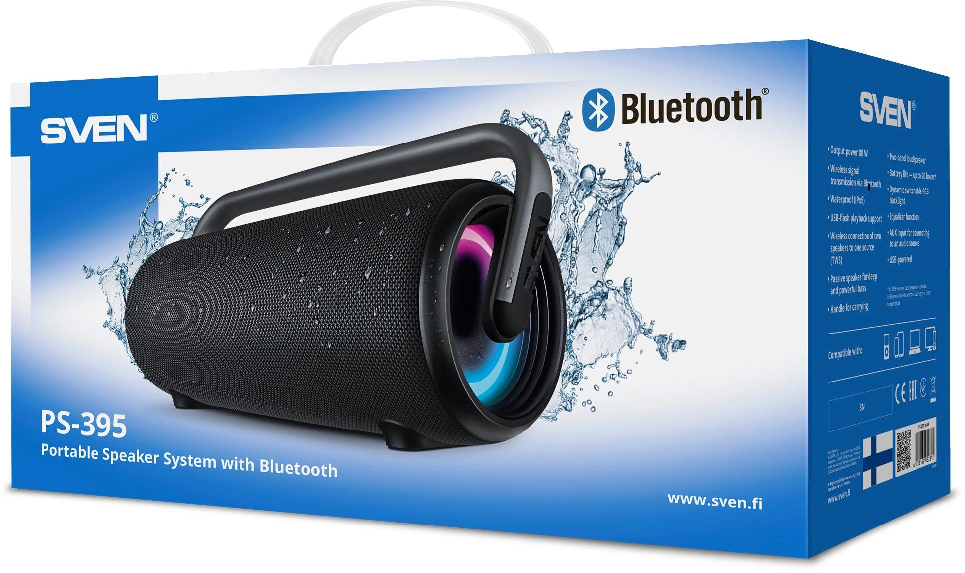 Колонка порт. Sven PS-395 черный/черный 80W Mono BT/3.5Jack 4800mAh (SV-022815)